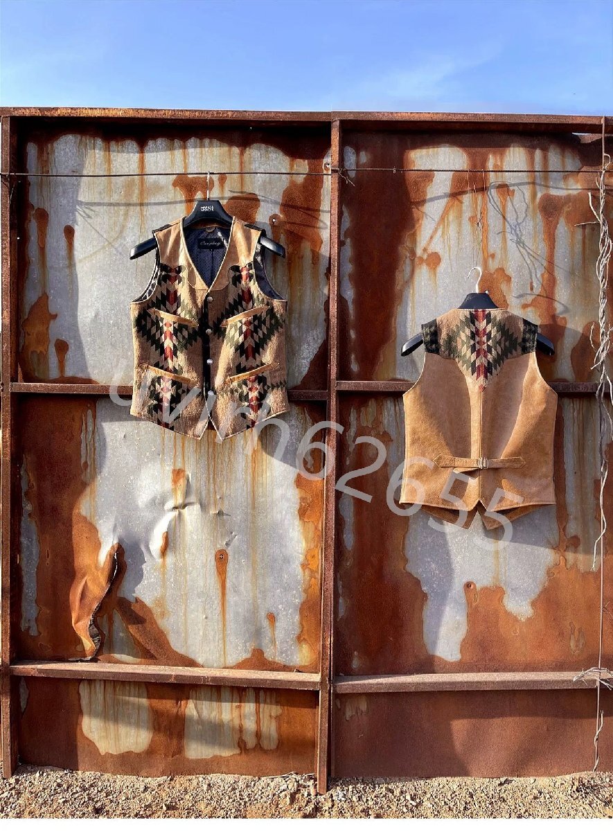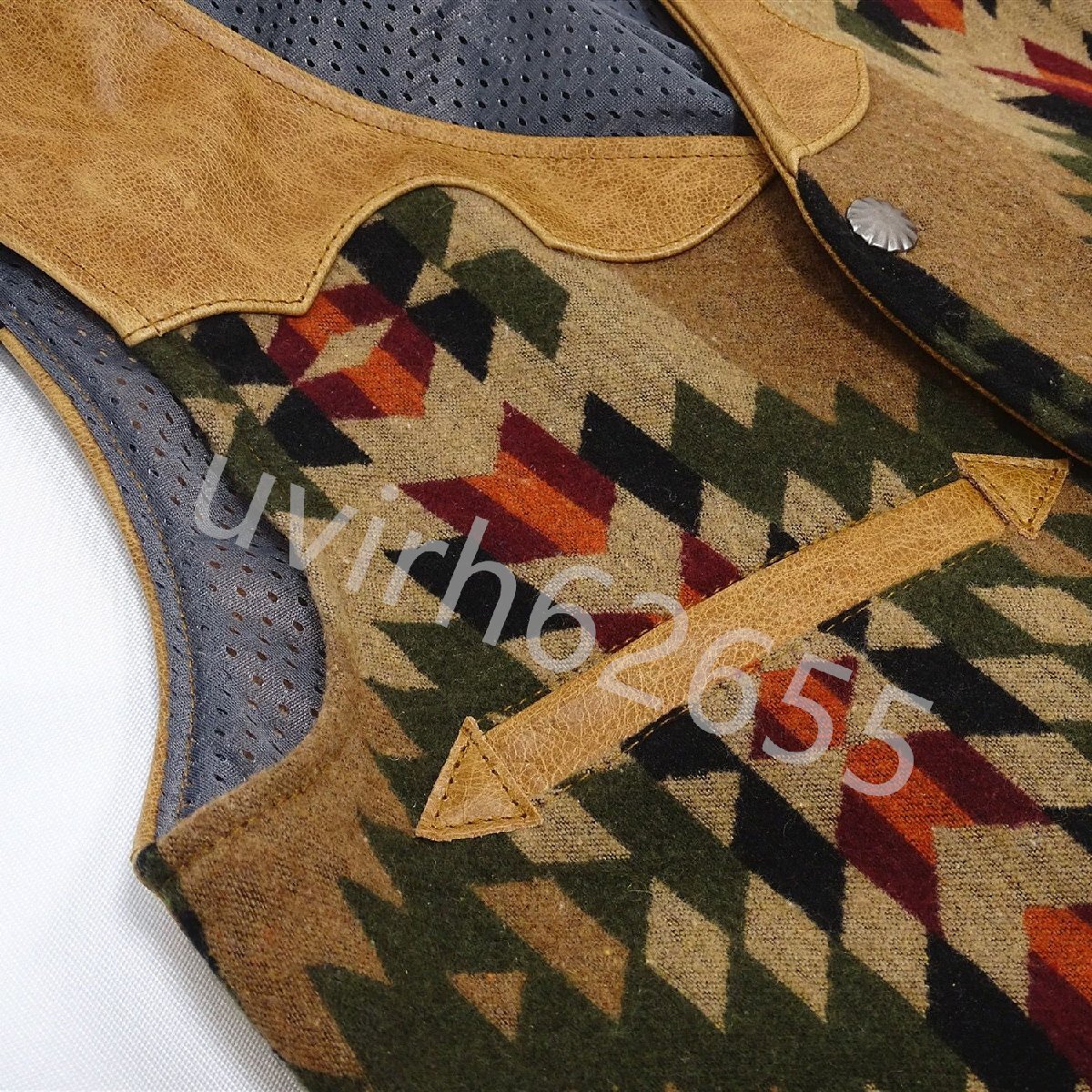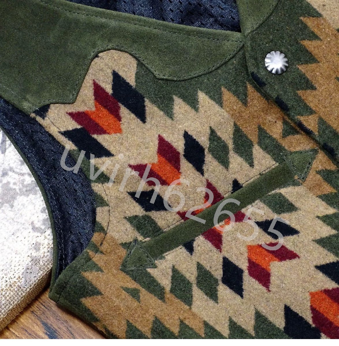 仔牛革 カーフスキン レザーベスト 本革 ナバホ柄 ワイルドターキー スエード 男女兼用 アメカジ VEST カウハイド M~5XL