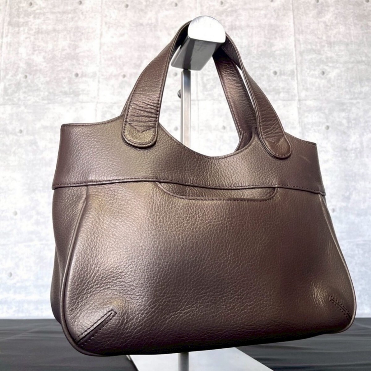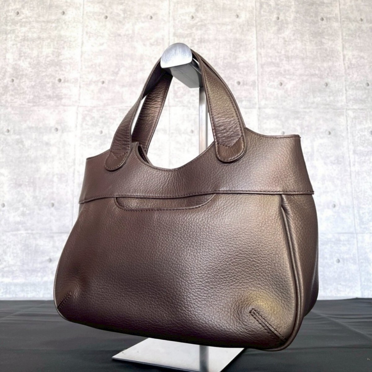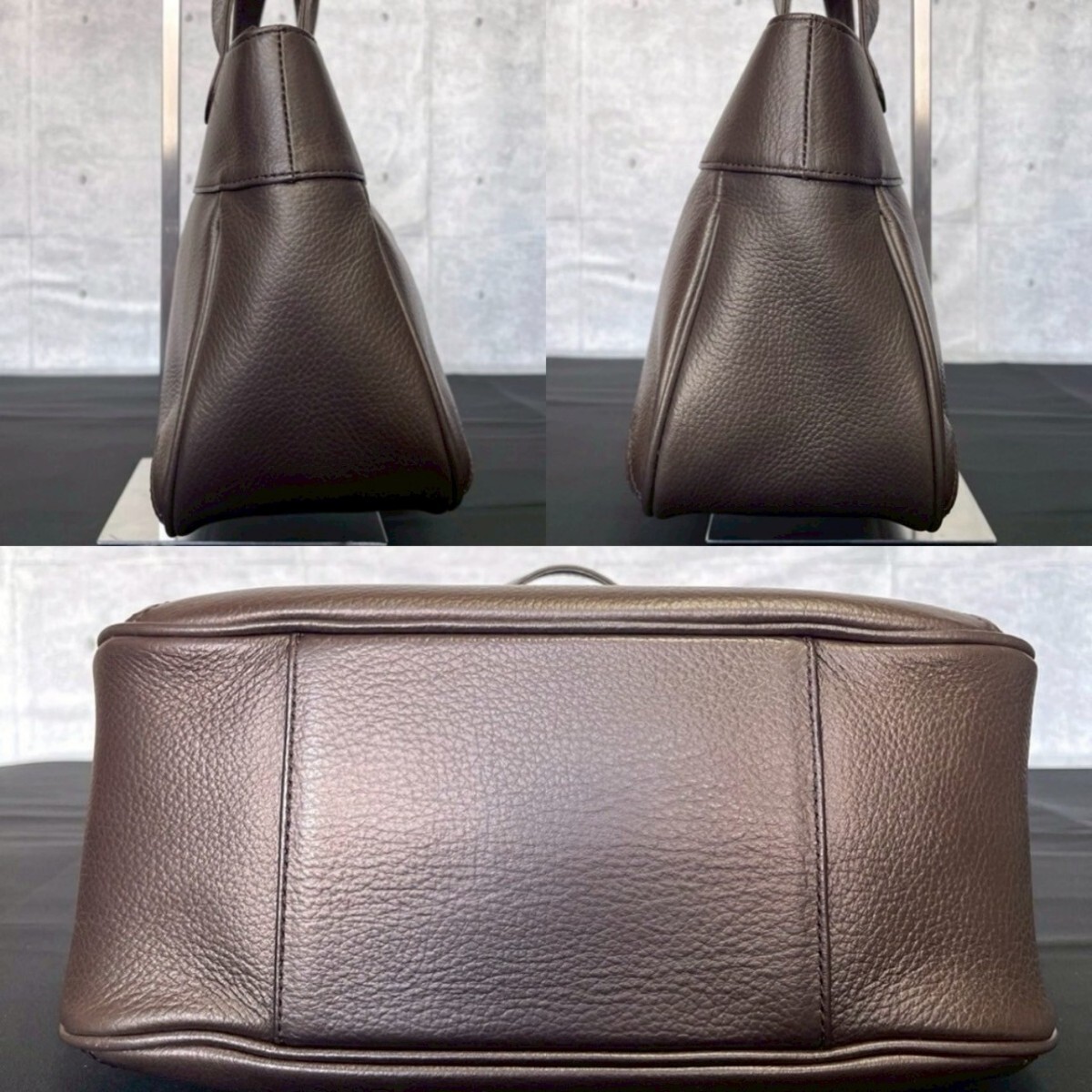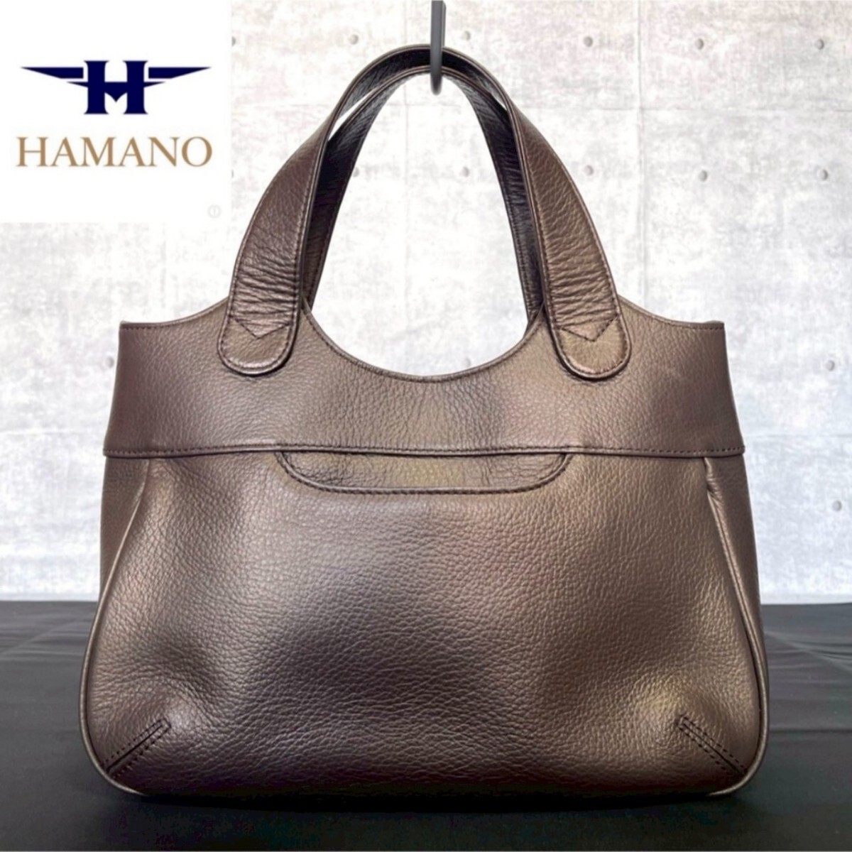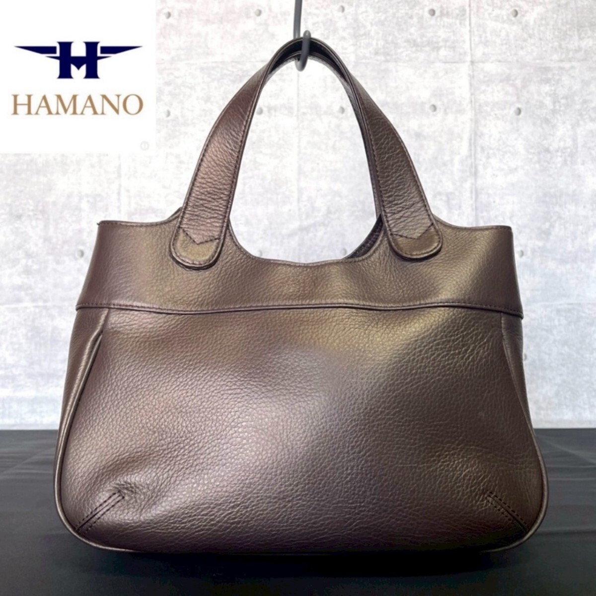 美品 HAMANO ハマノ 濱野皮革工藝 皇室御用達 シボ革 ブロンズ レザー ショルダーバッグ ハンドバッグ トートバッグ