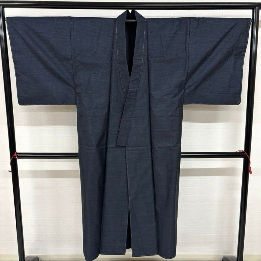 【楓】紳士着物 亀甲 本場泥藍大島紬 正絹 袷 UU-348