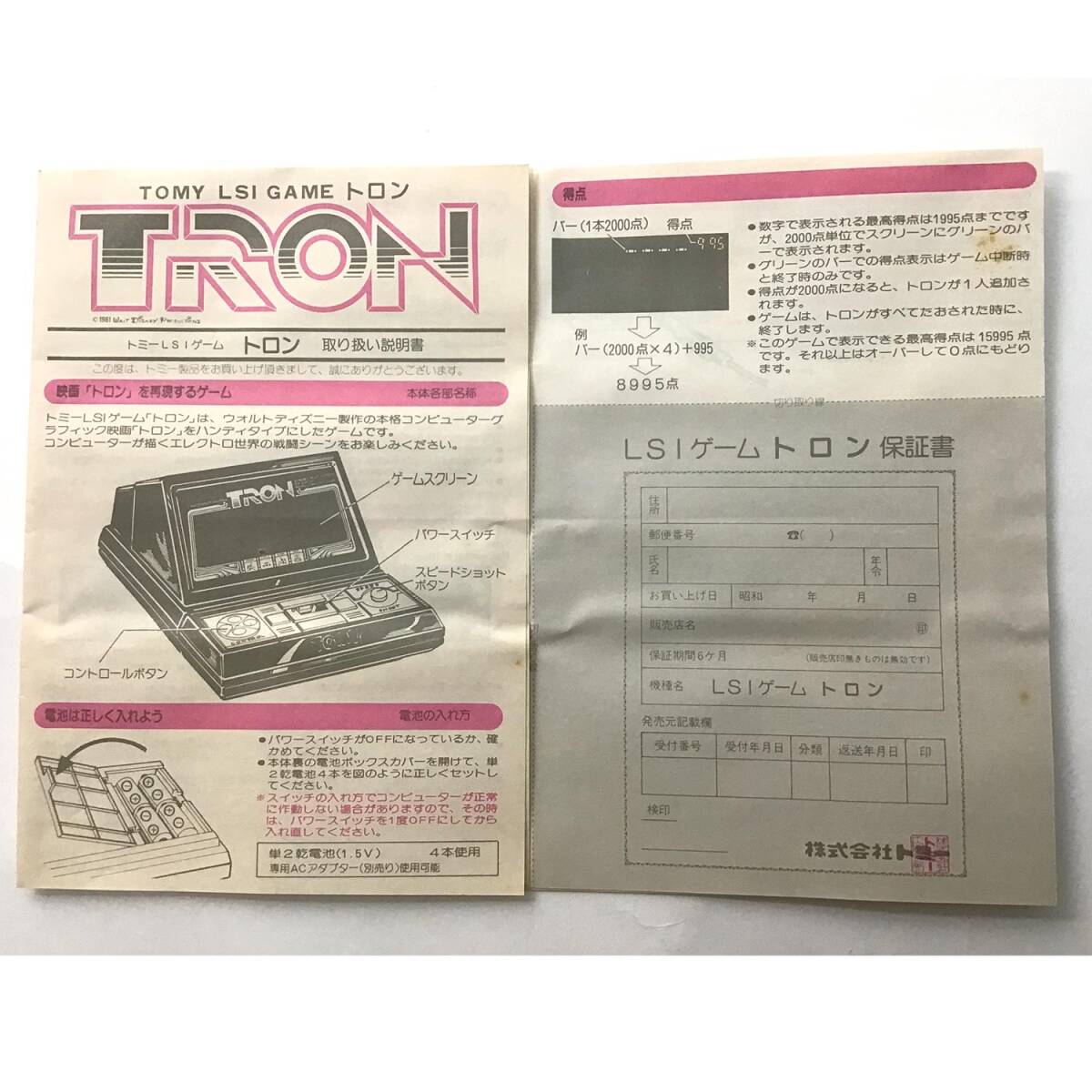 1981年トミー製、映画『TRON(トロン)』正式ライセンスのLSI卓上ゲームです。