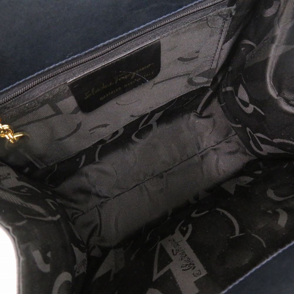 美品 サルヴァトーレフェラガモ ヴァラリボン レザー ネイビー 2WAY ハンドバッグ ショルダーバッグ 0909 Salvatore Ferragamo