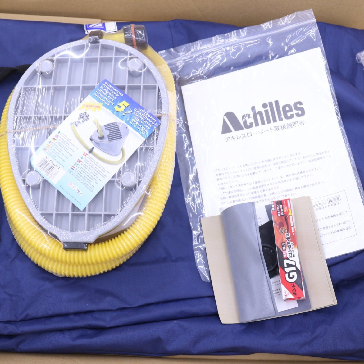 | 未使用ではありますが、長期展示品のためキズや汚れがありますのでご了承ください。裏面にはたてかけキズやよごれがあります。基本は屋内展示でしたが、一度外での展示会での展示歴がありますため、少々土ぼこりなどの付着がある場合があります。エアは24時間以上おいてエア漏れがないことは確認済みです。 エア漏れはありませんが、画像6枚目のアキレス名が貼ってある部分が接着剤がかわいて剥がれております。 発送する段ボールはやぶれやつぶれがあります。付属品は画像が全てとなっております。補修キットの接着剤などは、時間が経過しているため使用できない場合がありますのでご了承ください。 ノークレームノーリターンおねがいします。 | |||||||||||||||||||||||||||||||