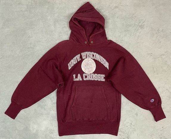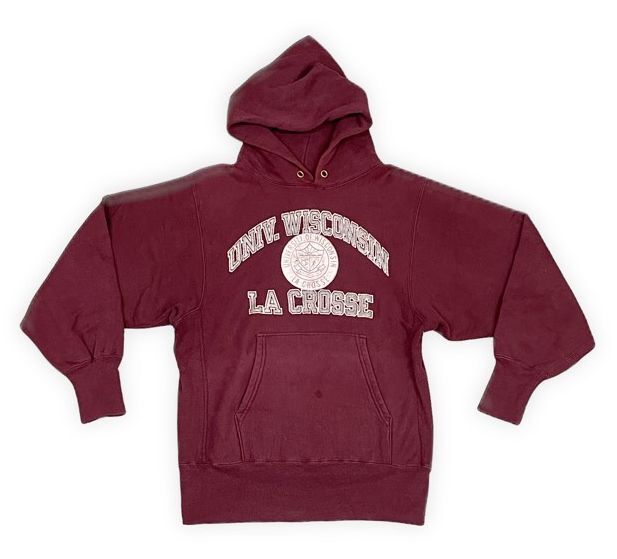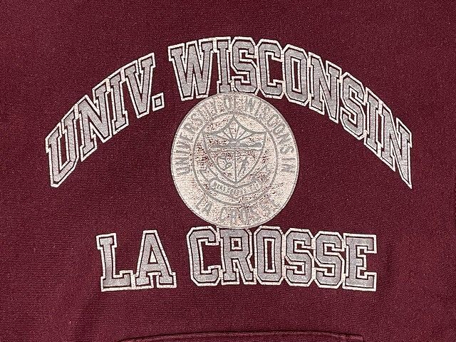 説明 | スウェットの定番チャンピオン・リバースウィーブ ウィスコンシン大学 UNIV.WISCONSIN LA CROSSE3段ラバープリント 90年代 米国製トリコ刺繍タグ |