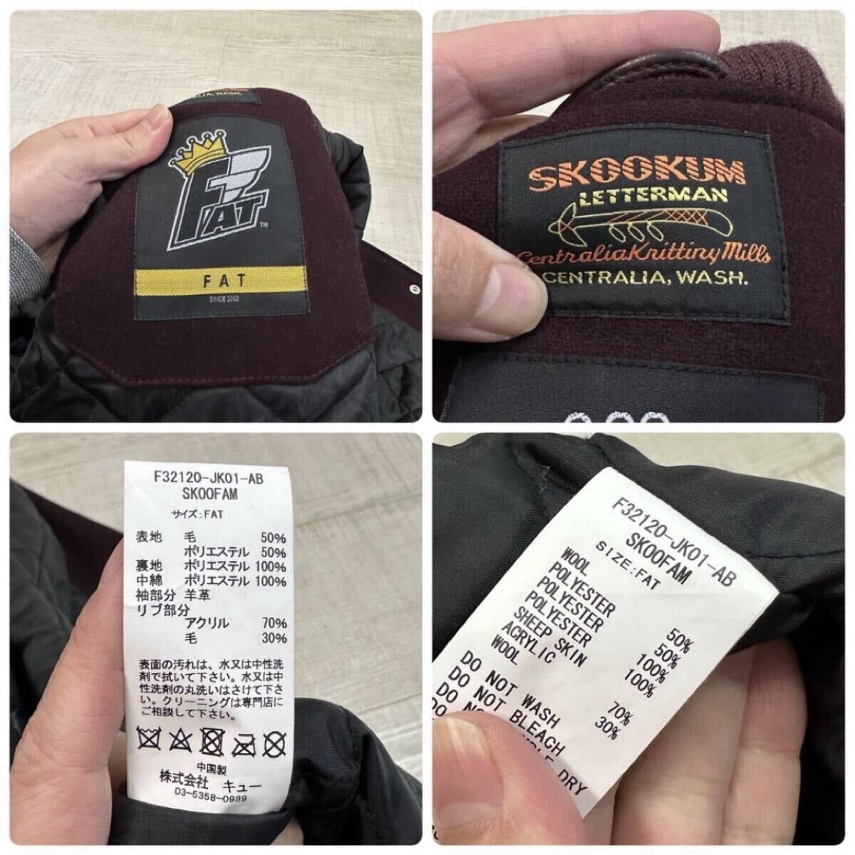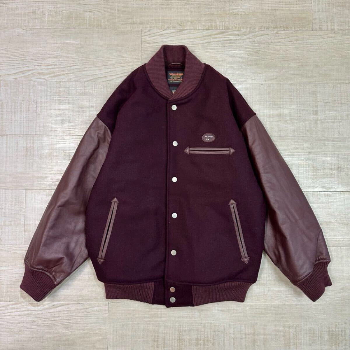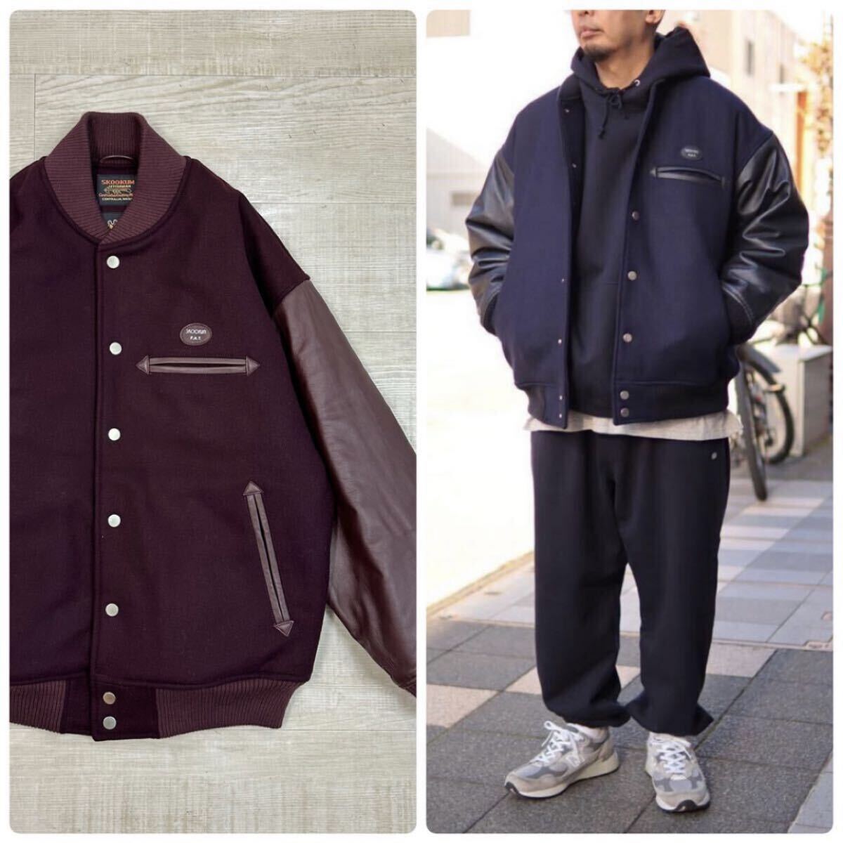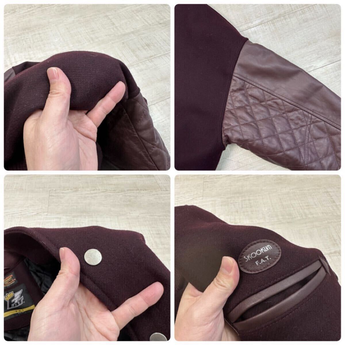 21aw 2021 名作 FAT エフエーティー x SKOOKUM スクーカム SKOOFAM JACKET メルトン × レザー スタジャン キルティング サイズ FAT 701