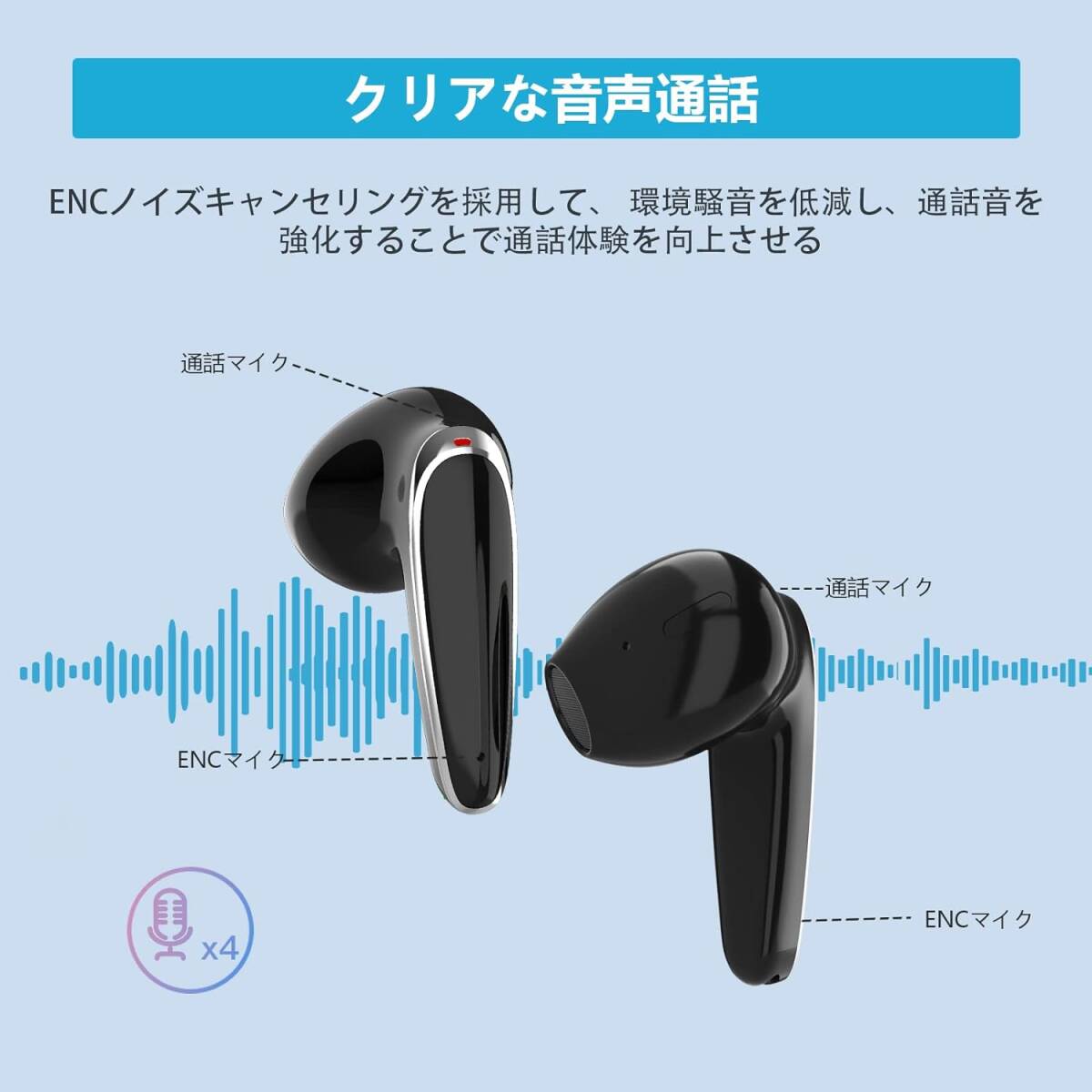 小型ながらもマイクを搭載し、ENCノイズキャンセリング技術により、周りの雑音に左右されず、クリアな音楽視聴や通話が可能です。13mmの液晶ポリマー複合振動板を搭載し、AACに対応した高音質再生が可能。また、耳への負担を最小限に抑えた人体工学設計で、長時間の使用も快適です。