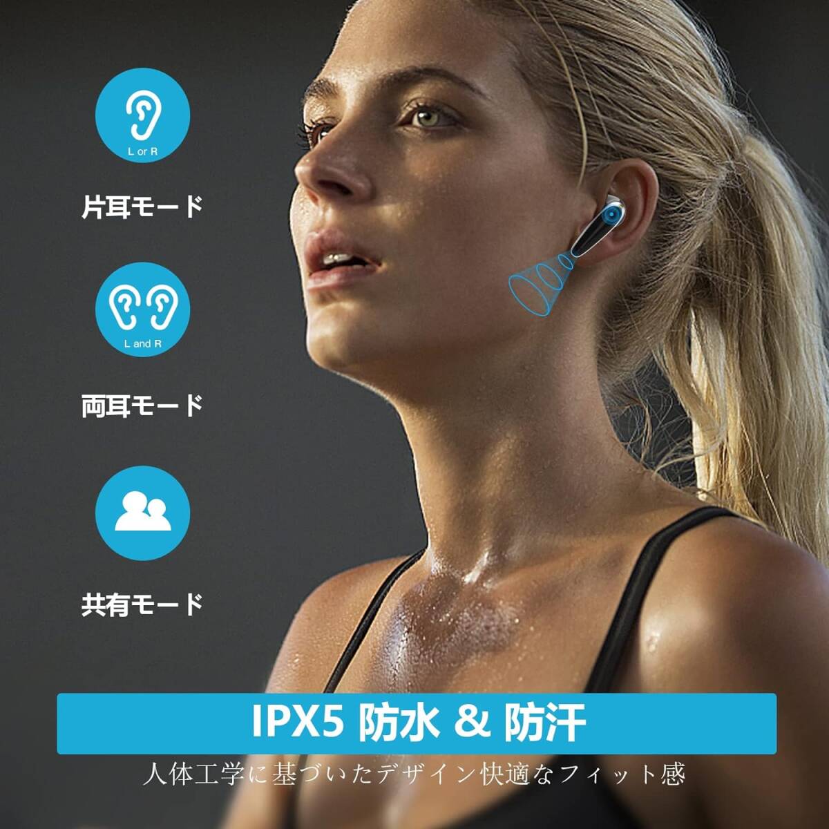 おすすめ 高音質ワイヤレスイヤホン 左右分離型 IPX5防水仕様 Hi-Fi音質