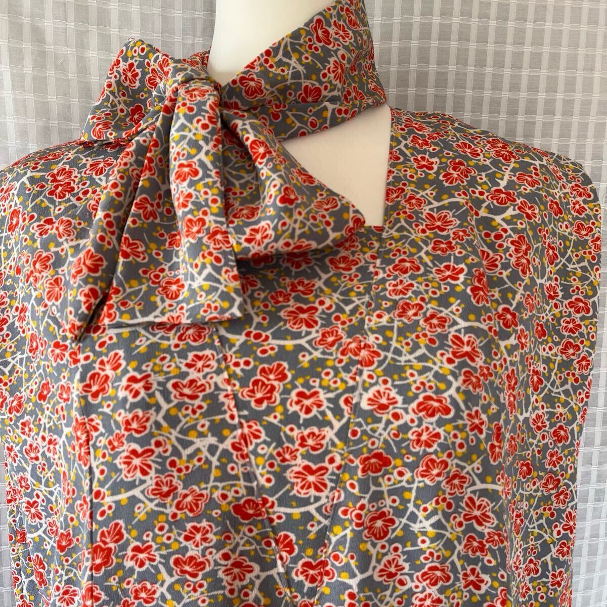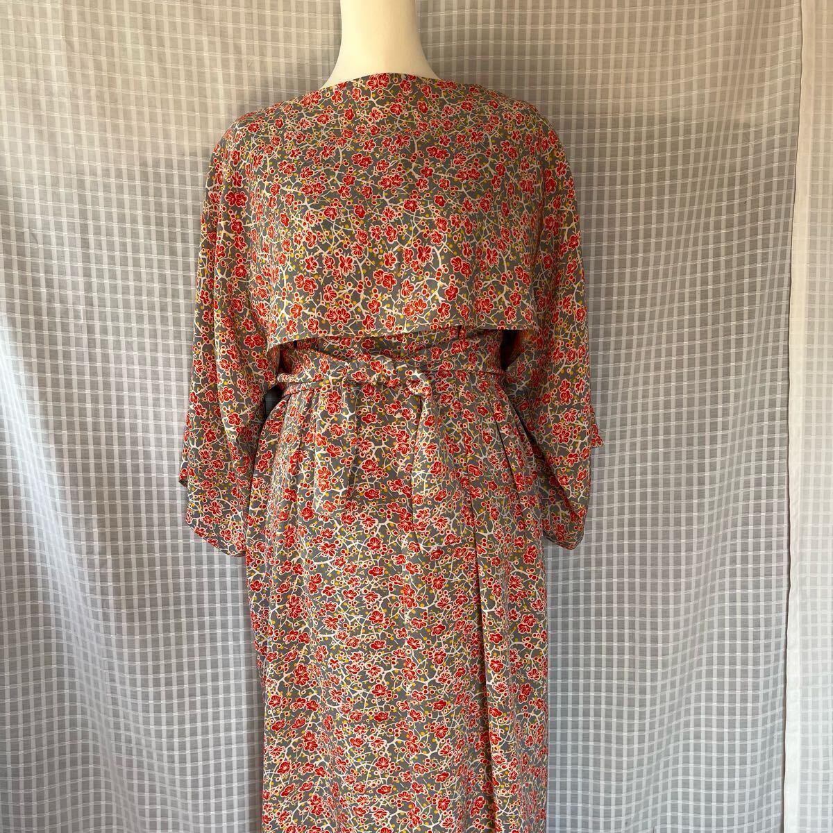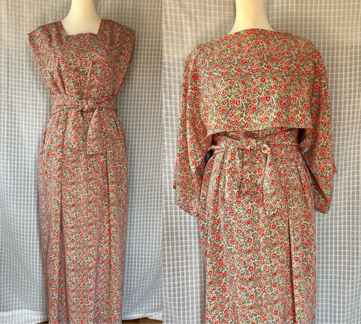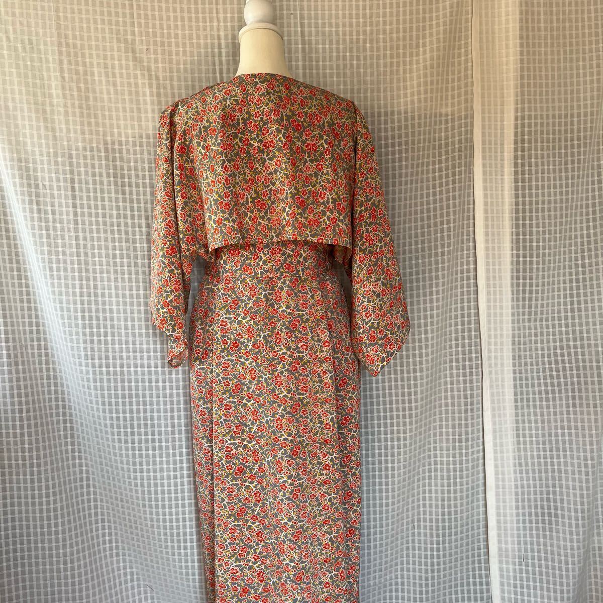 ★着物リメイク ボレロ付きワンピース 梅模様 演奏会 パーティー お呼ばれ 縮緬 シルク 正絹 リボン付 ★