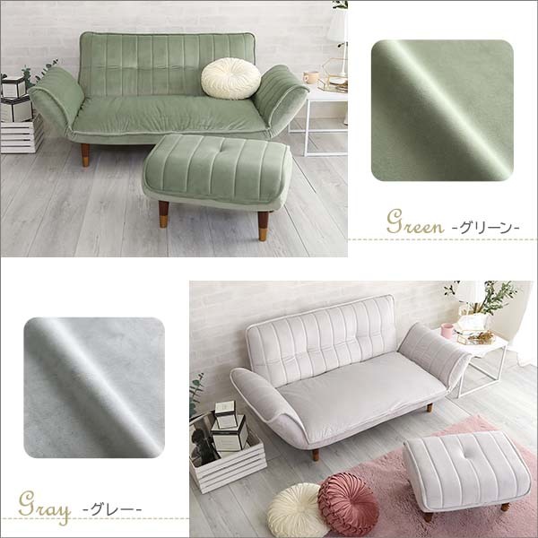 大人かわいいインテリア ベロアカウチソファ 2人掛け+オットマンセット Chammy -チャミー- ピンク&ブラウン