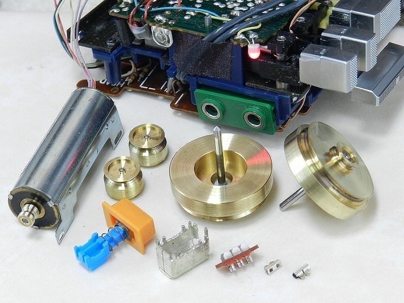 ・ベルトの通り道であるキャプスタン、モータープーリーの一皮研磨。音揺れの原因となるゴム汚れを徹底して除去しました。