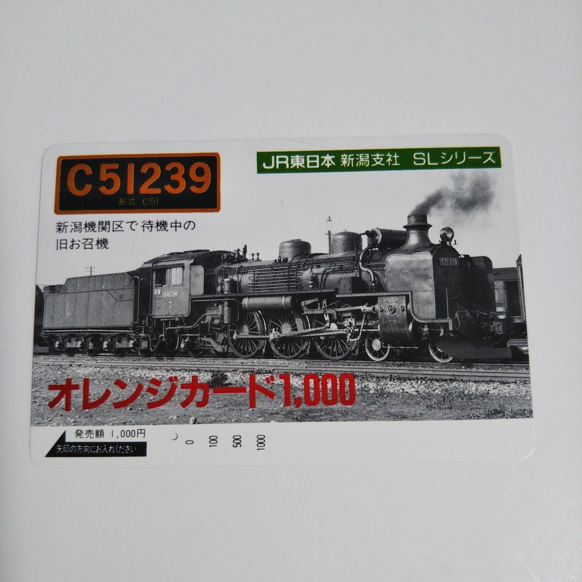 JR東日本・新潟支社 SLシリーズ 新潟機関区で待機中の旧お召機 C51239 形式 C51 オレンジカード 使用済み 1穴