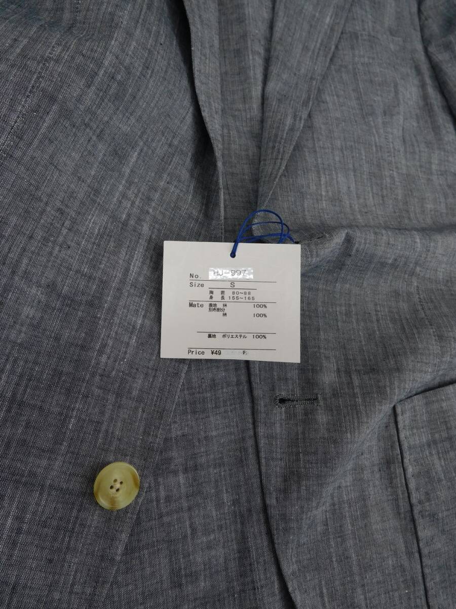 売りつくし 新品 5.3万円 高品質 テーラードジャケット 2ボタン メンズ シングル Sサイズ 夏物 スーツ 綿 100% ライトグレー 無地 520