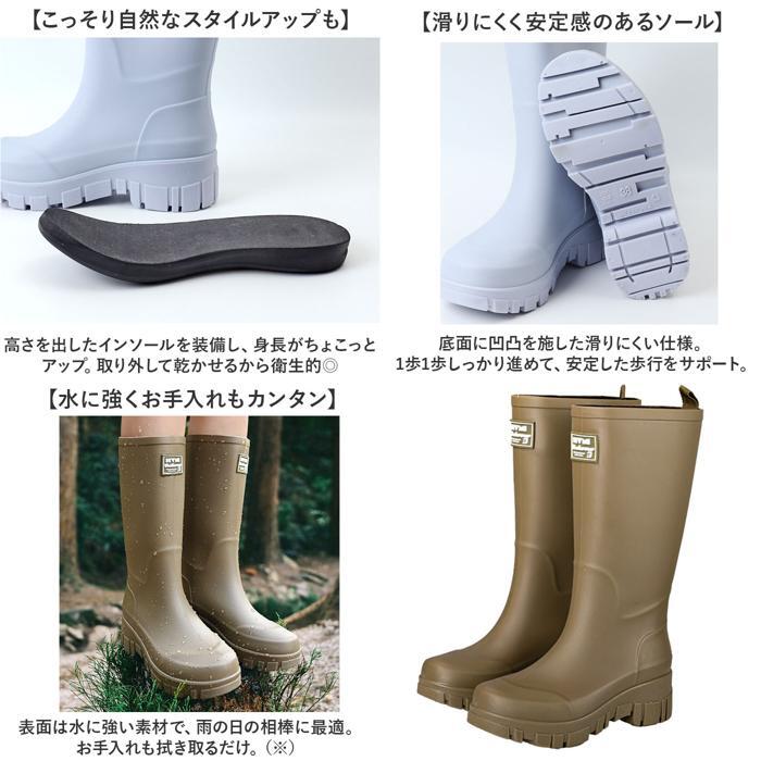 | 商品説明 | ・・【雨の日もおしゃれにお出かけ】 ・憂鬱な日も、お気に入りのアイテムで楽しく☆「レディース用ロングレインブーツ」。 ・【ヘビロテ確定のベーシックデザイン】 ・無地カラーに、フロントラバータグがアクセント。気軽に使えるレインブーツ。 ・【いつでもどこでも足入れスムーズ】 ・ベルトなどがなく、スッと足入れしやすい履き口設計。バックタブ付きで、脱ぎ履きラクチン。 ・【しっかりカバーできるロング丈】 ・膝下あたりまですっぽり覆えるロングブーツ。雨の強い日や、アウトドアシーンでも安心。 ・【色んなスタイルに素敵にマッチ】 ・ショートパンツやミニスカートと合わせて足元すらり。パンツインもOK。 ・【屈曲性があり、歩きやすさが向上】 ・つま先部分は、足の動きに合わせて柔軟に曲がる形状。蹴り上げやすくつまずきにくい! ・【こっそり自然なスタイルアップも】 ・高さを出したインソールを装備し、身長がちょこっとアップ。取り外して乾かせるから衛生的◎ ・【滑りにくく安定感のあるソール】 ・底面に凹凸を施した滑りにくい仕様。1歩1歩しっかり進めて、安定した歩行をサポート。 ・【水に強くお手入れもカンタン】 ・表面は水に強い素材で、雨の日の相棒に最適。お手入れも拭き取るだけ。 ・(※)完全防水ではありません。 |
