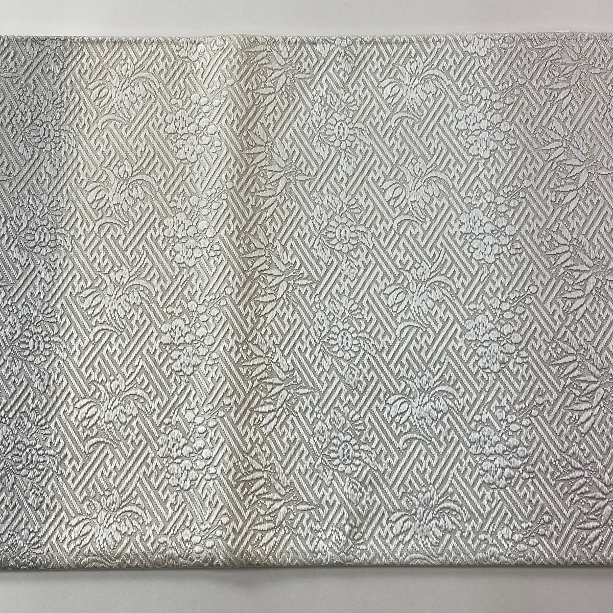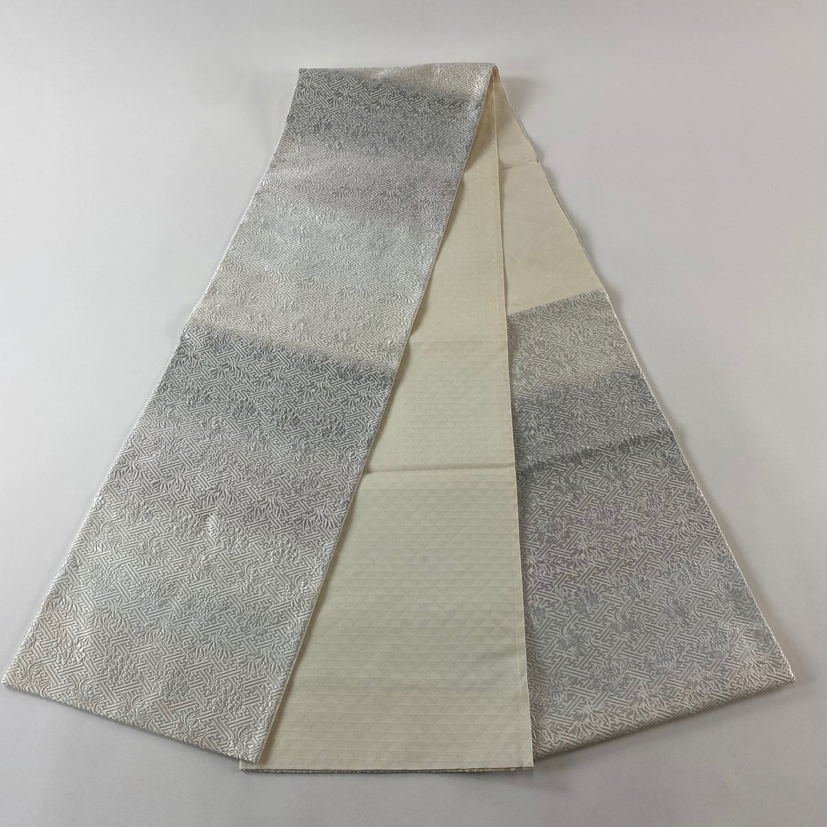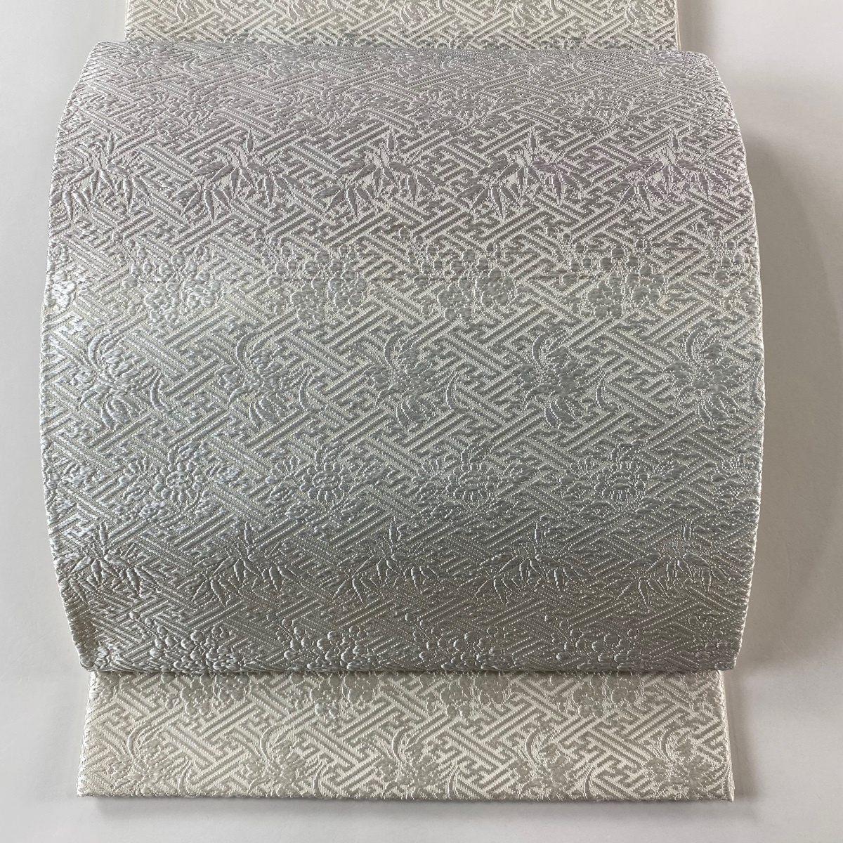 | 袋帯 美品 名品 紗綾形 梅 唐織 灰白 六通 正絹 【中古】 |