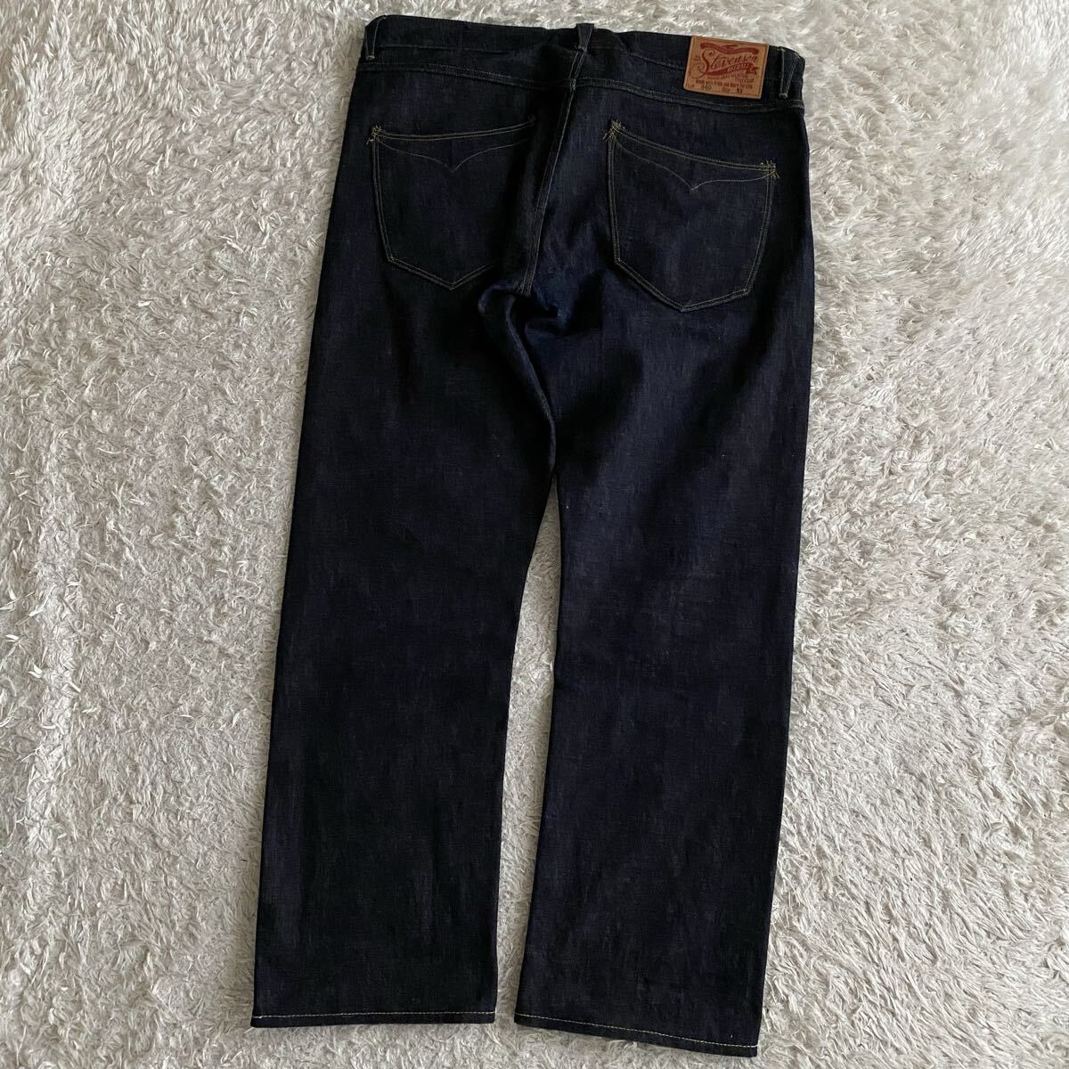 13.5ozのオリジナルセルヴィッチデニム。米綿の超長綿を使用したサラリとしたドライタッチで重厚感のある生地となります。シャトル織機で織り上げることで糸質、生地の風合いがヴィンテージ感のある素材に仕上がっています。