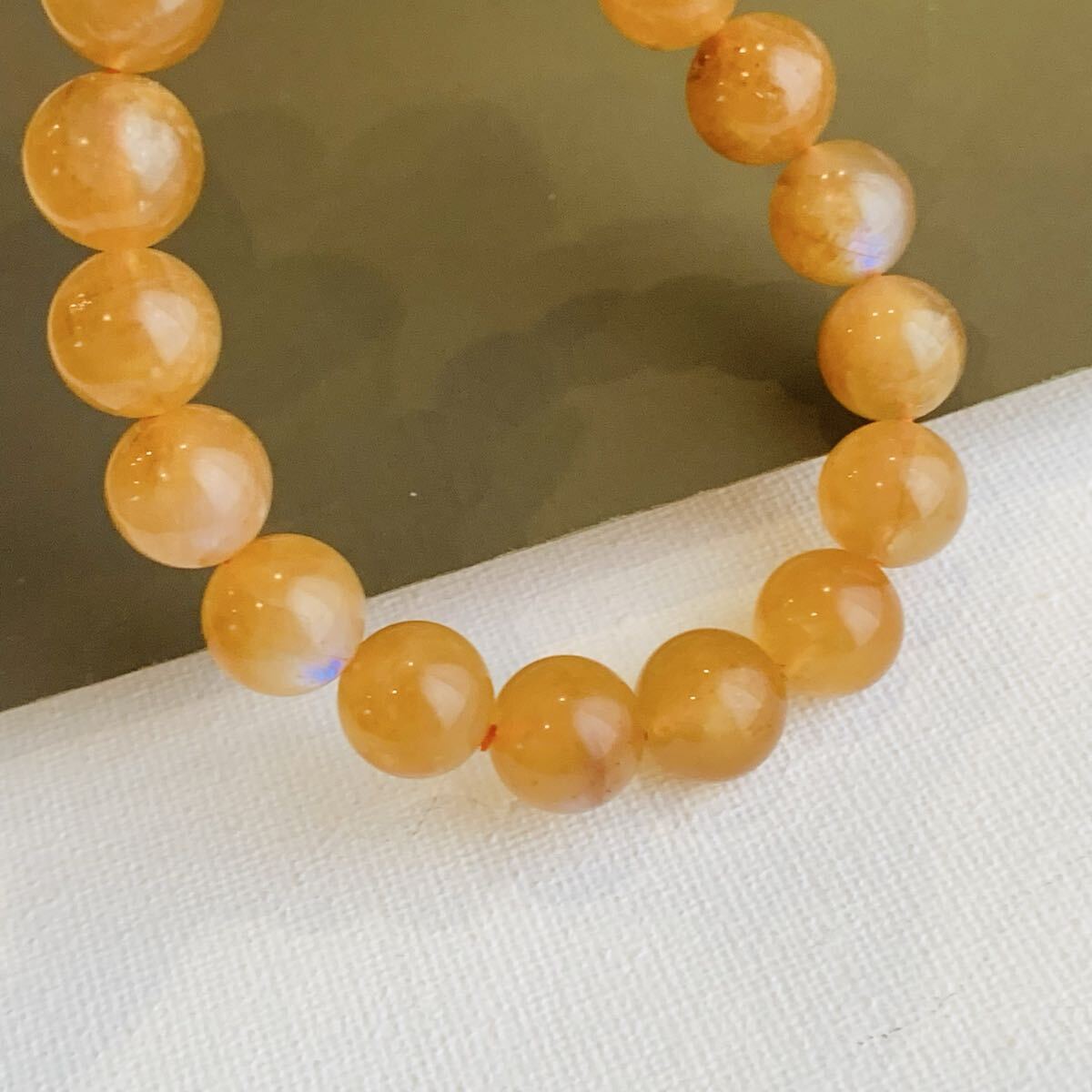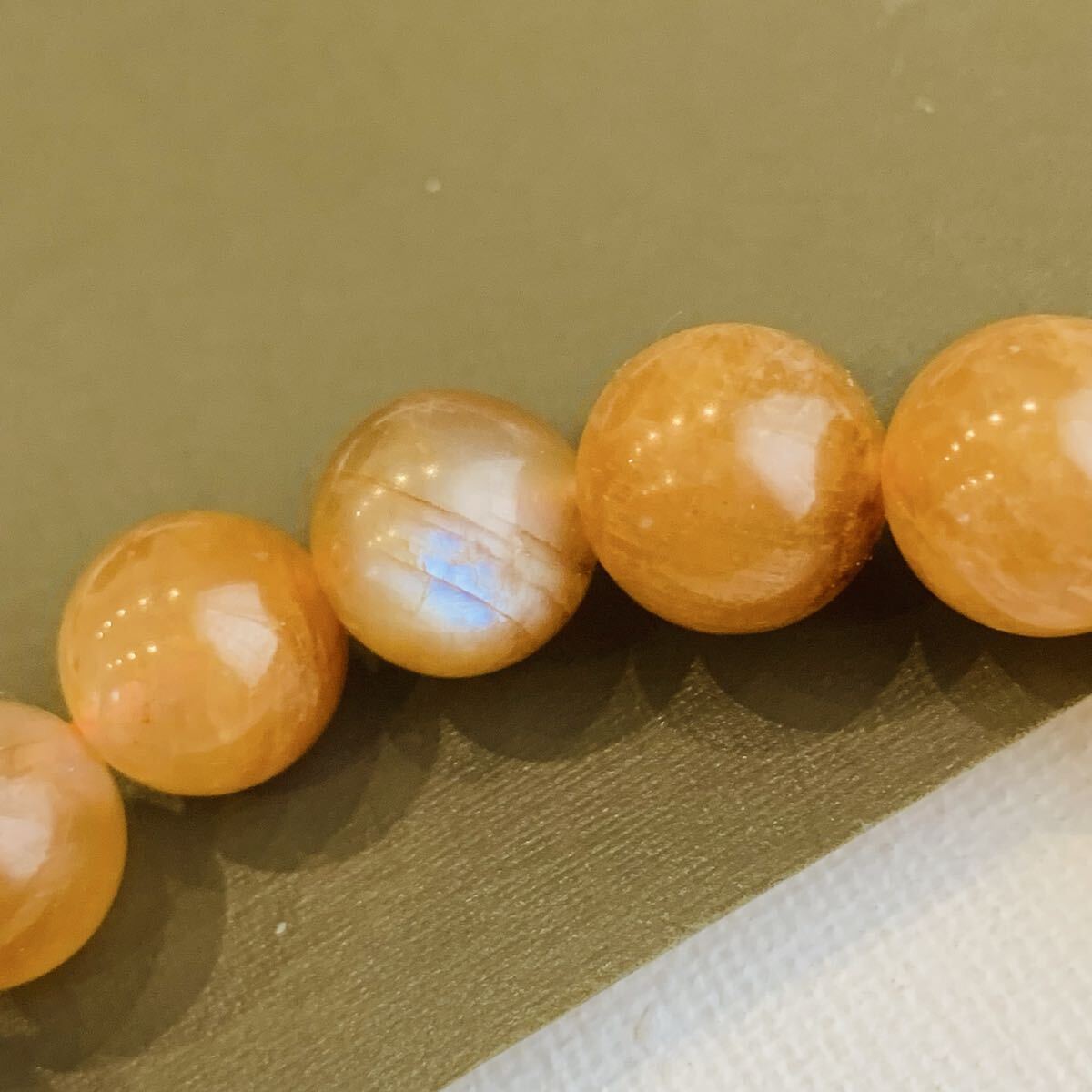 オレンジムーンストーンは、心身をポジティブにし、感情の安定、直感力向上、創造性の開花、自己受容、そしてパートナーシップの円満に良いとされています。感情的なネガティブな思考を和らげ、自己肯定感を高める効果があり、また「豊穣」や「結実」の象徴でもあり金運アップにも繋がると信じられています