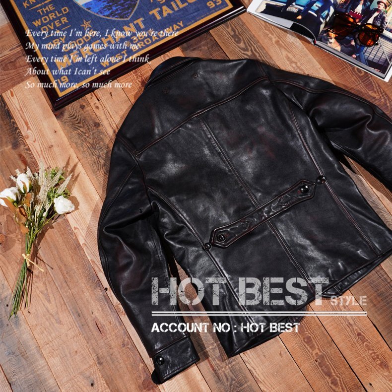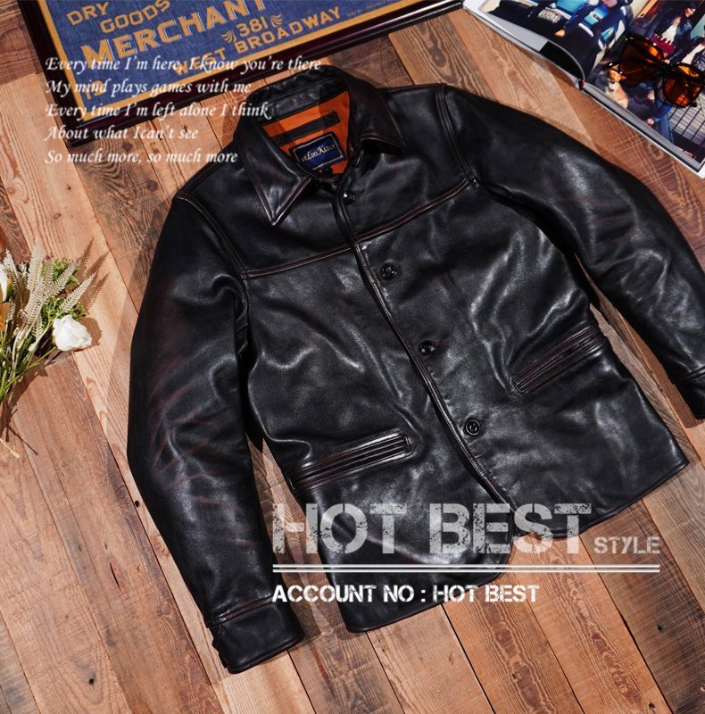 1.3mm茶芯ホースハイドメンズ 革ジャン 復刻20's ブレーキマンコート レザージャケット カーコート スイッチヤード 馬革 Y1254/XL