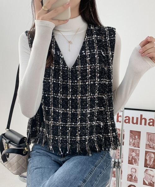 参考商品名:ラップ風ツイードフリンジベスト(裏地付)