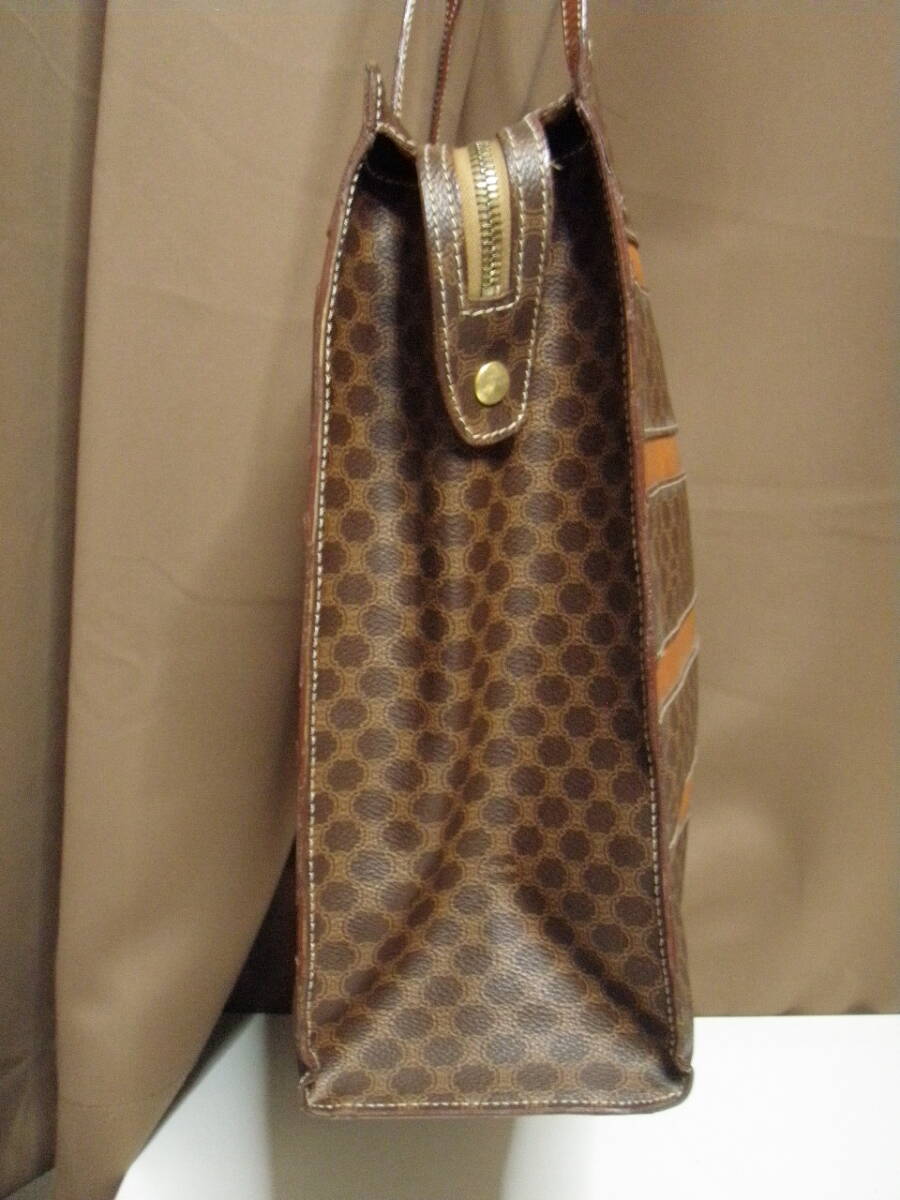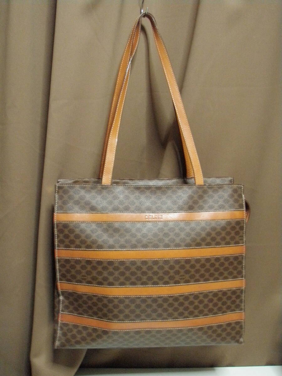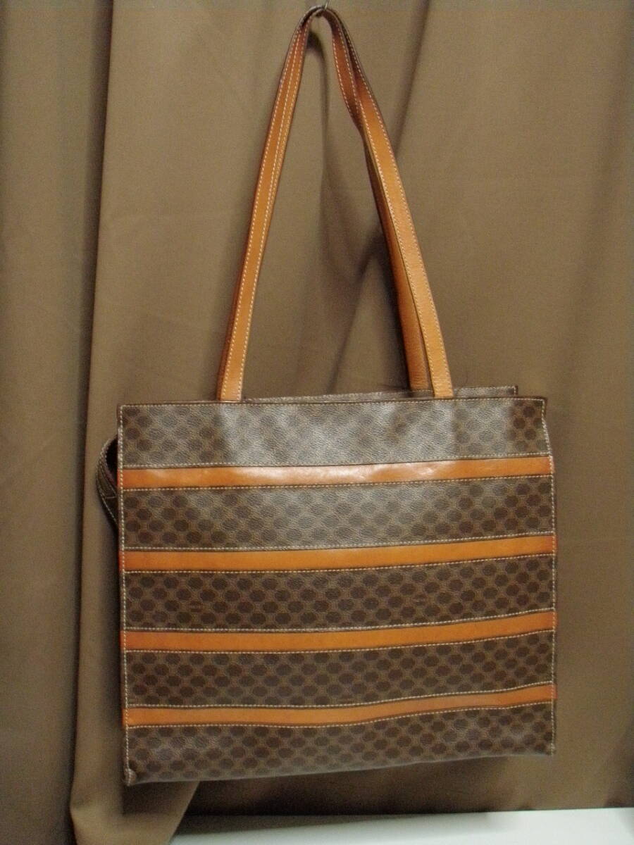 ビンテージ レアモデル CELINE セリーヌ マカダム柄 ボーダー 切替トート バッグ イタリア製 VINTAGE ヴィンテージ