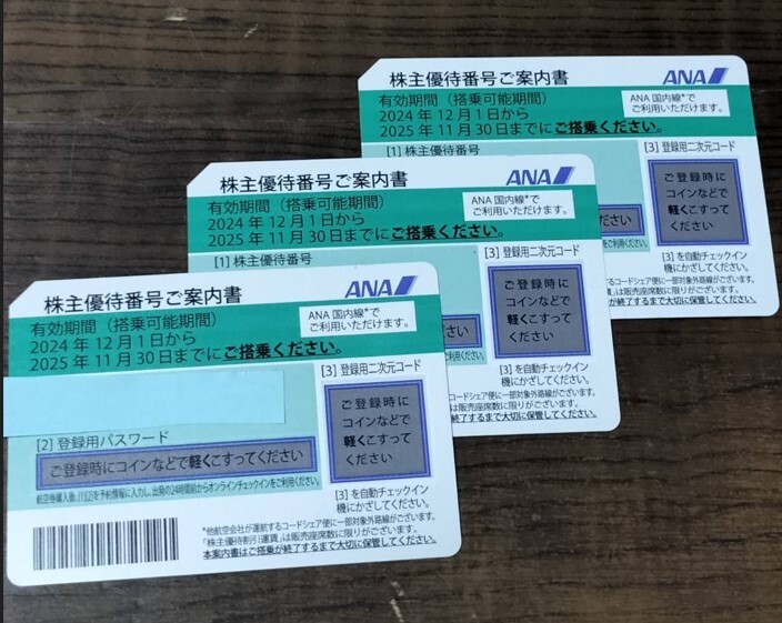 ANA株主優待券(有効期間2025年11月30日まで)3枚組