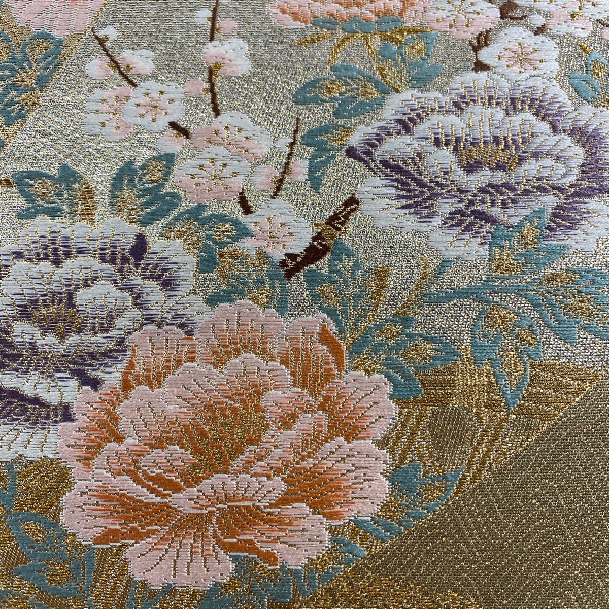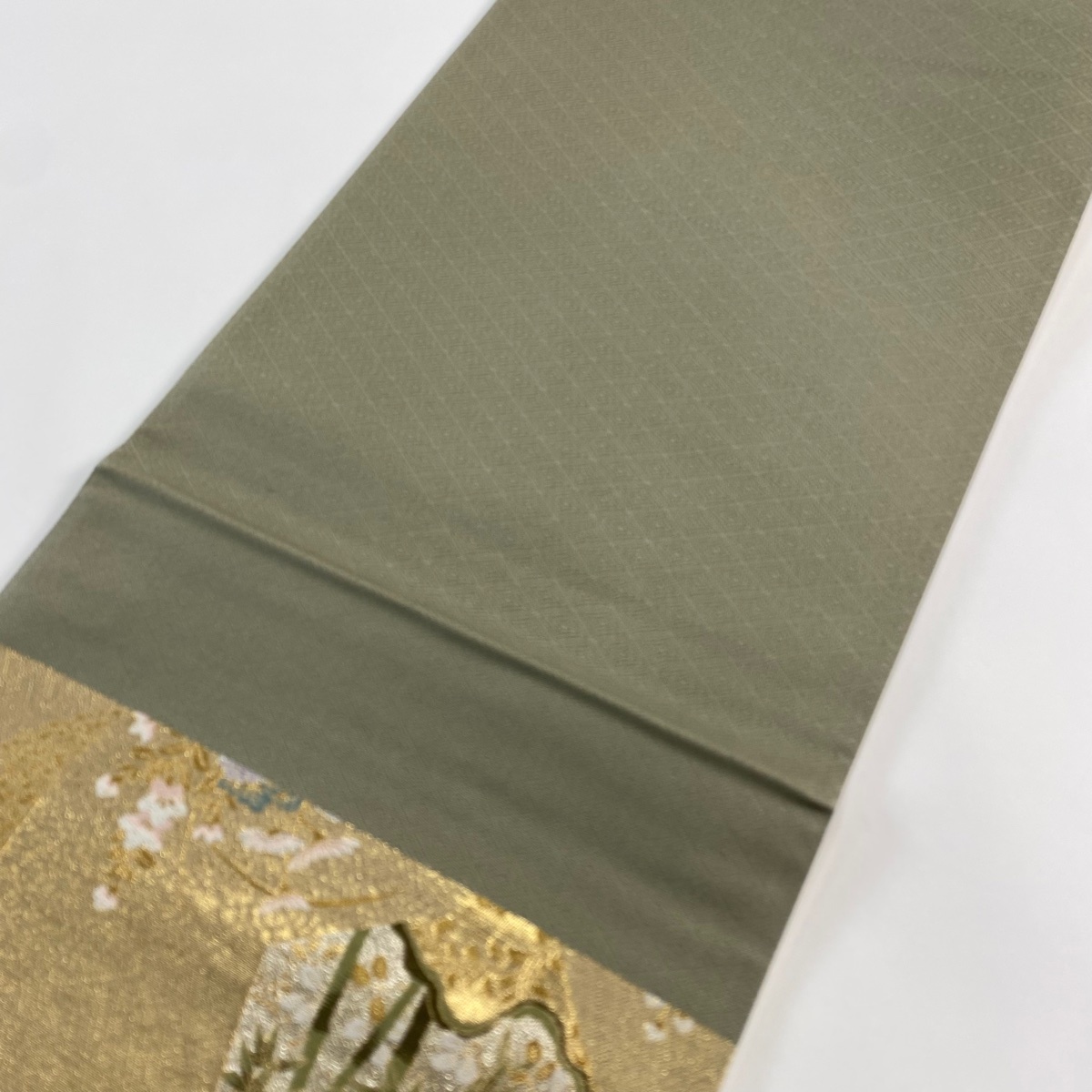 | 袋帯 美品 秀品 四季草花 金糸 箔 金色 六通 正絹 【中古】 |