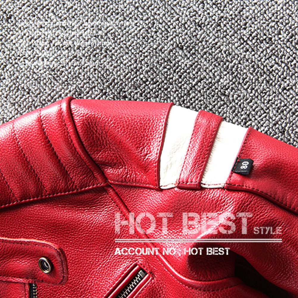イタリアンレザーのカウハイドで作られた、1950年代スタイルのパテッドシングルライダースレザージャケットです。