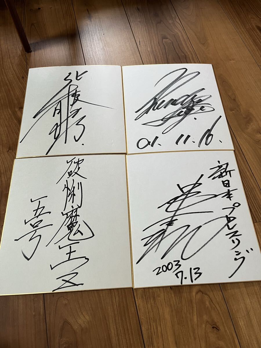 写真4枚の新日本プロレスのサイン色紙14枚セットでの出品です。詳しい方はよく見ていただけると幸いです。