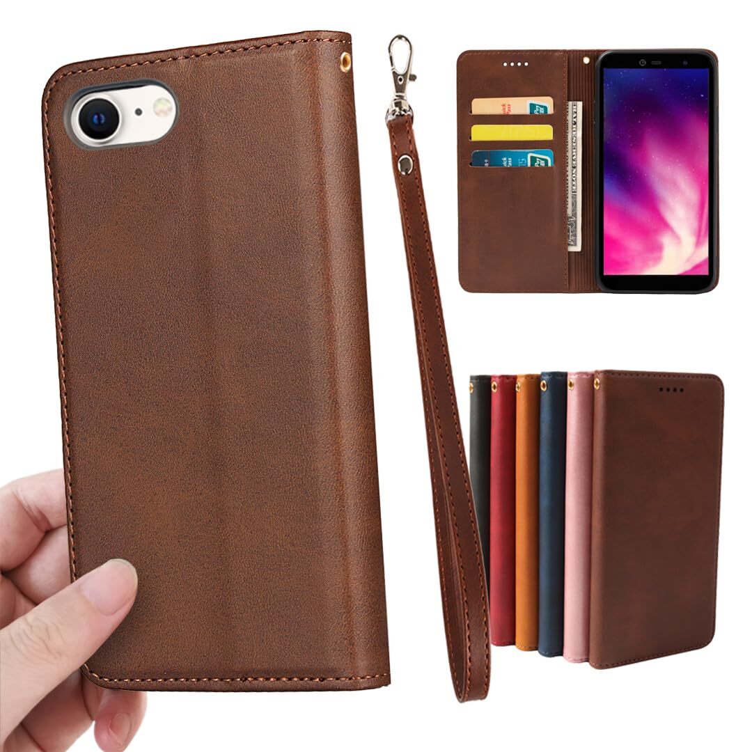 GOKIGIOD 適用 iPhoneSE 第3世代 / 第2世代 / iPhone8 / iPhone7 全通用 ケース 手帳型 PUレザー ストラップ 同梱 カード収納 スタンド機能 耐衝撃 アイフォン 7 8 SE2 SE3 スマホケース 手帳 いphoneSE3 case カバー 財布型 内蔵マグネット 弱磁 ストラップホール 携帯カバー レトロ ダークブラウン