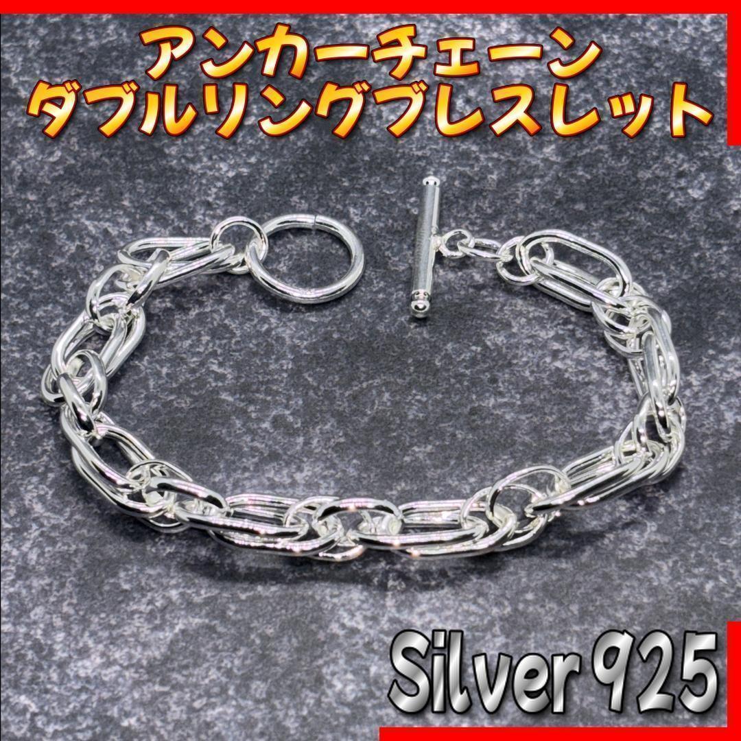 シルバー925 アンカーチェーン ダブルリング マンテルブレスレット メキシカンジュエリー シェーヌダンクル ブレスレット レディース