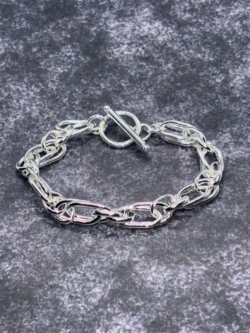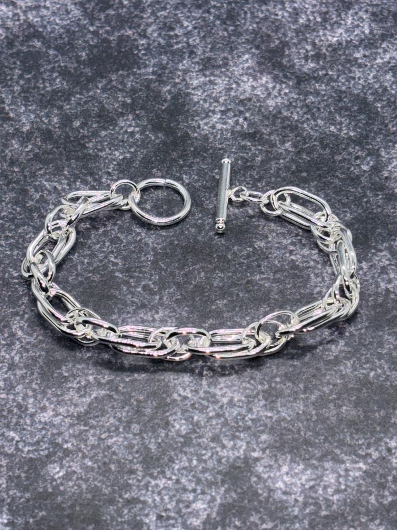 立体感のある個性的なダブルチェーンデザインが魅力のシルバーブレスレットです。