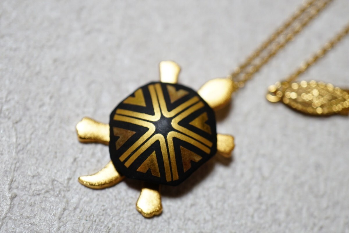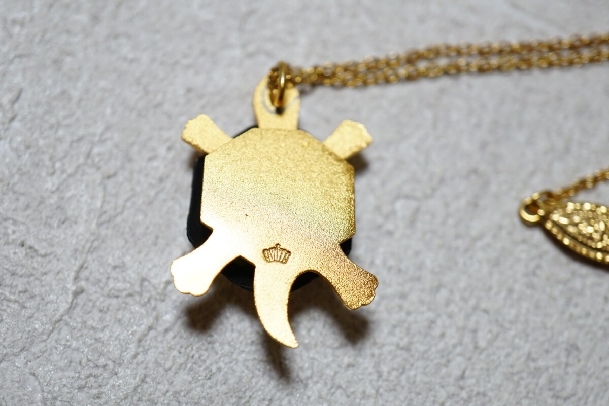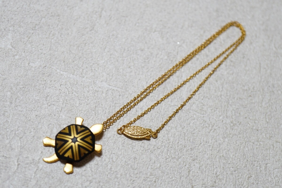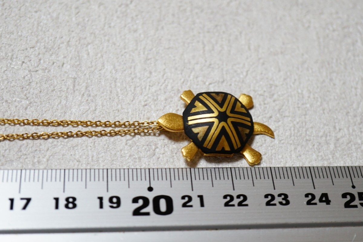 350 AMITA 金工 象嵌 亀 ネックレス ペンダント ヴィンテージ アクセサリー ゴールドカラー アンティーク ダマスキナード ぞうがん 装飾品