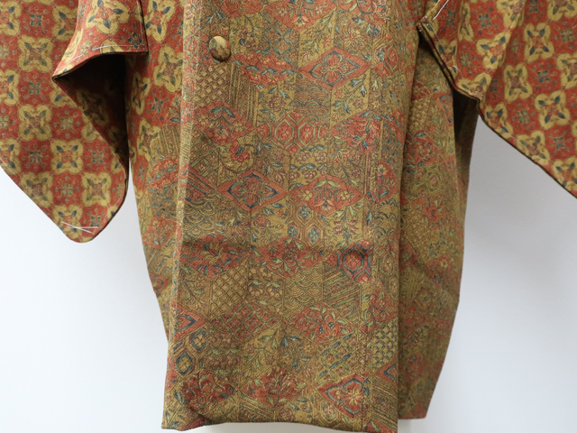 リサイクル商品ではございますが、大変良い状態のお品です。 地色は、赤茶 です。 1枚目の画像が近いお色かと思われます。 素材は正絹です。 |