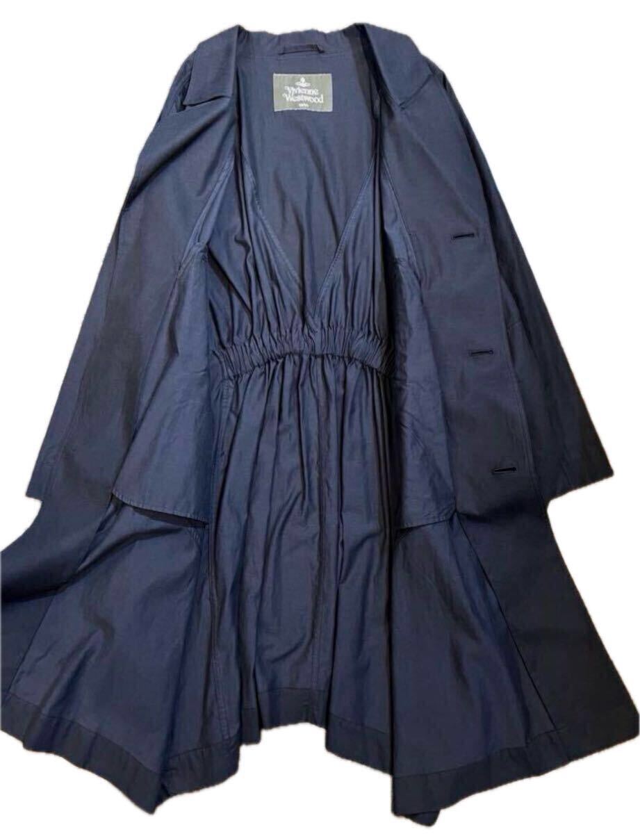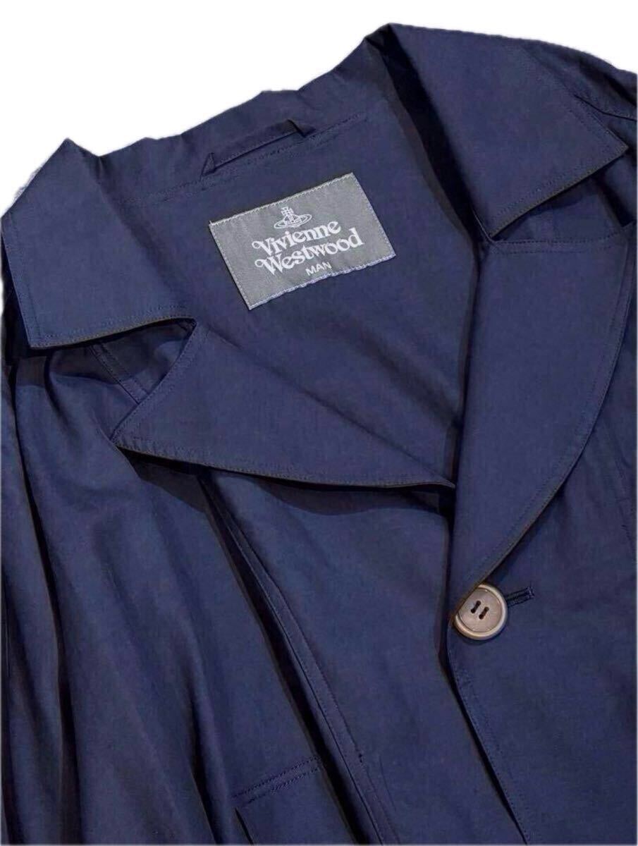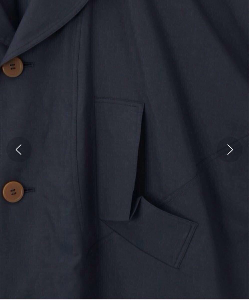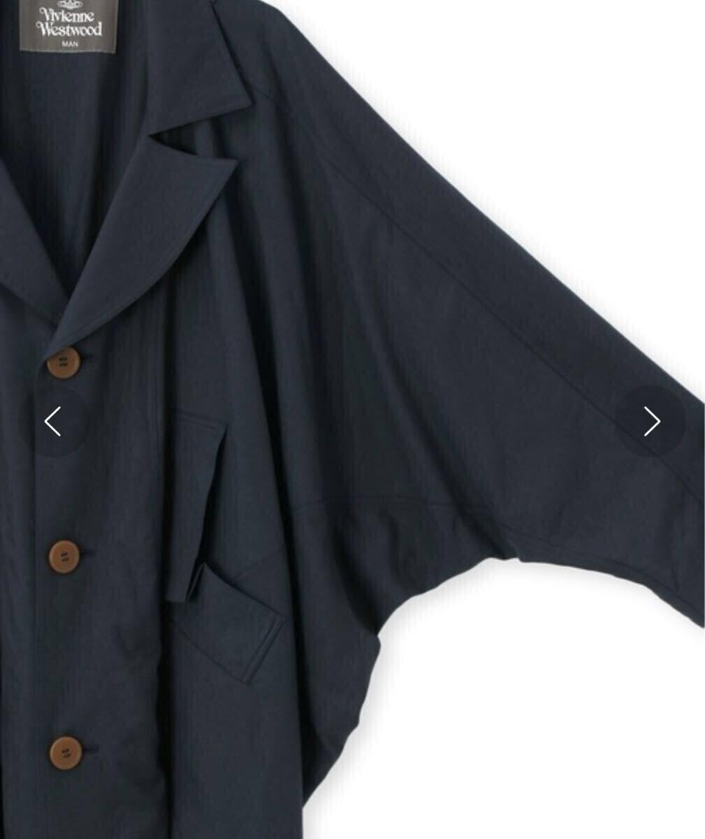 オーバーサイズでありながら、背中のギャザーですっきりと見える適度なボリューム感がスタイリッシュなアウター。再生繊維/コットンを高密度に織り、バイオワッシャー加工を施すことによりフェード感のある味わい深い生地に仕上げています。VivienneWestwoodらしいポケット口のスクエアパターンによる歪み、大きな襟元がデザインポイント。