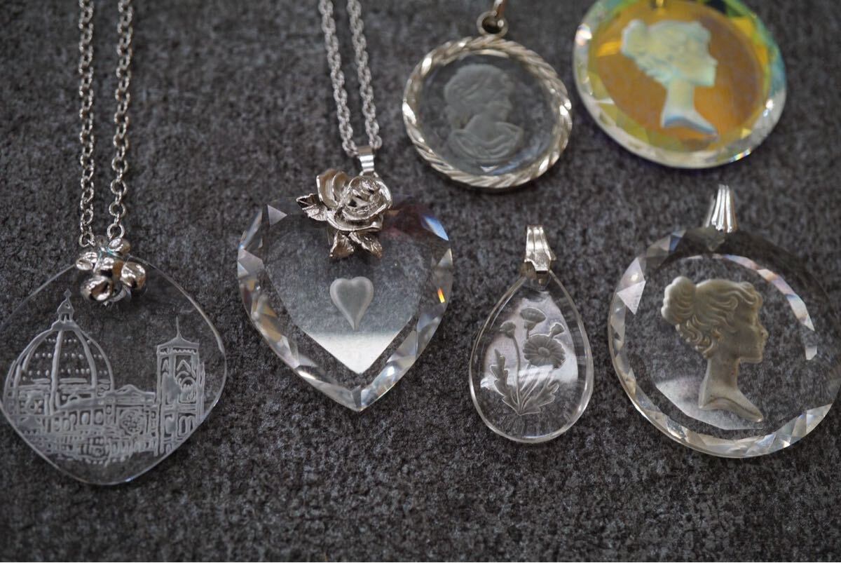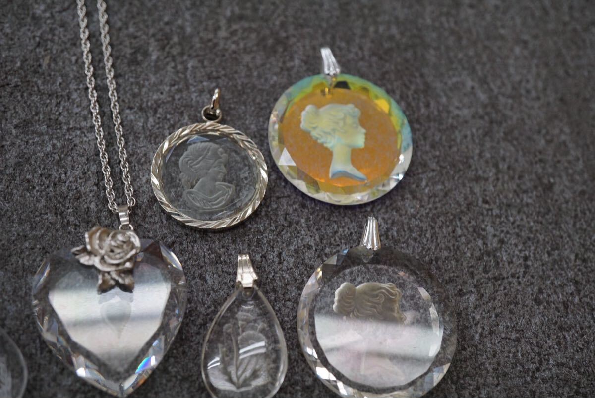 B513 インタリオ 人像 貴婦人 花など ヴィンテージ ネックレス ペンダント 8点セット アクセサリー 大量 まとめて おまとめ まとめ売り