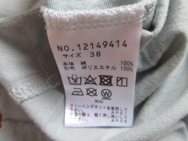 美品:POINTLIGNE 胸元のプリントがオシャレな薄緑の半袖Tシャツ 38
