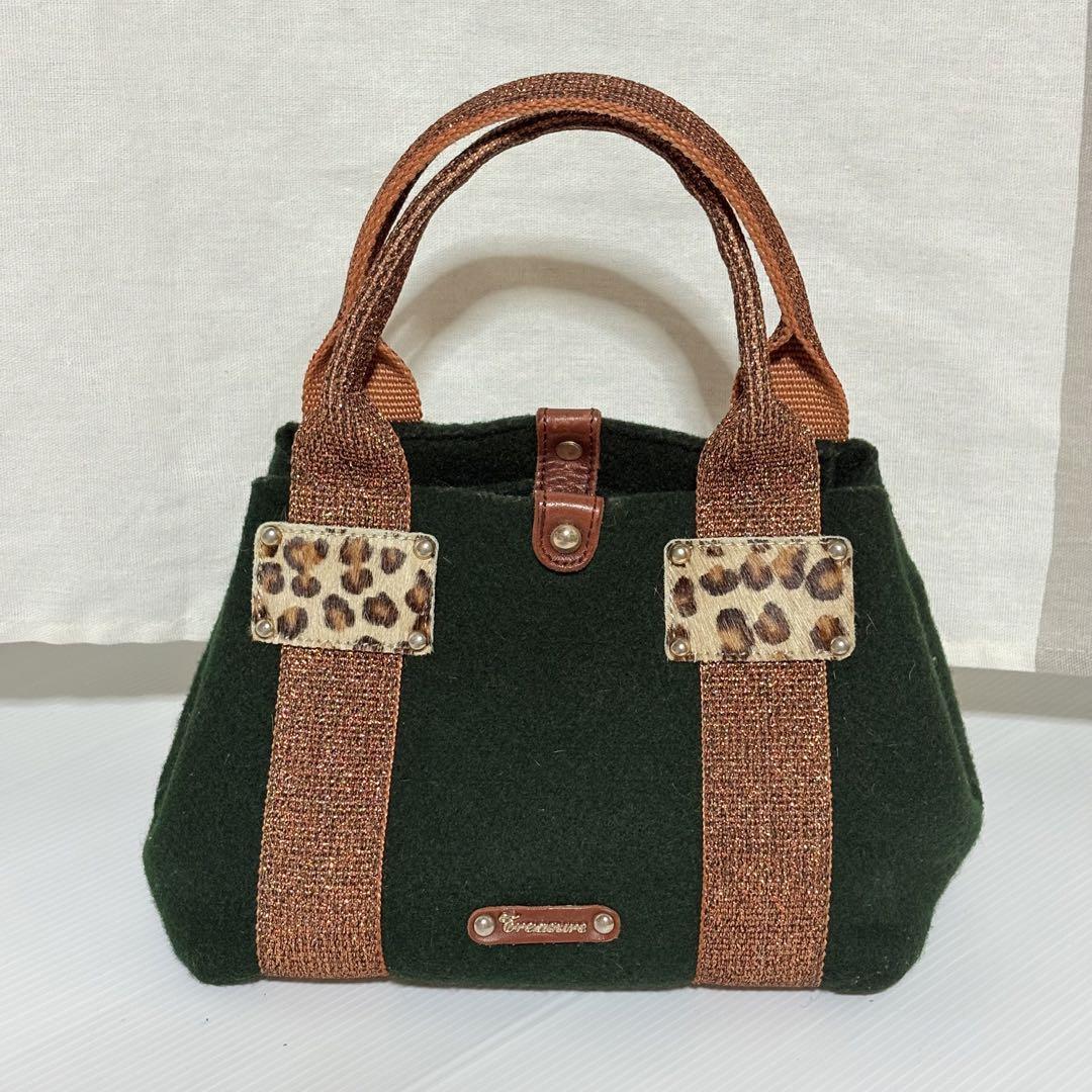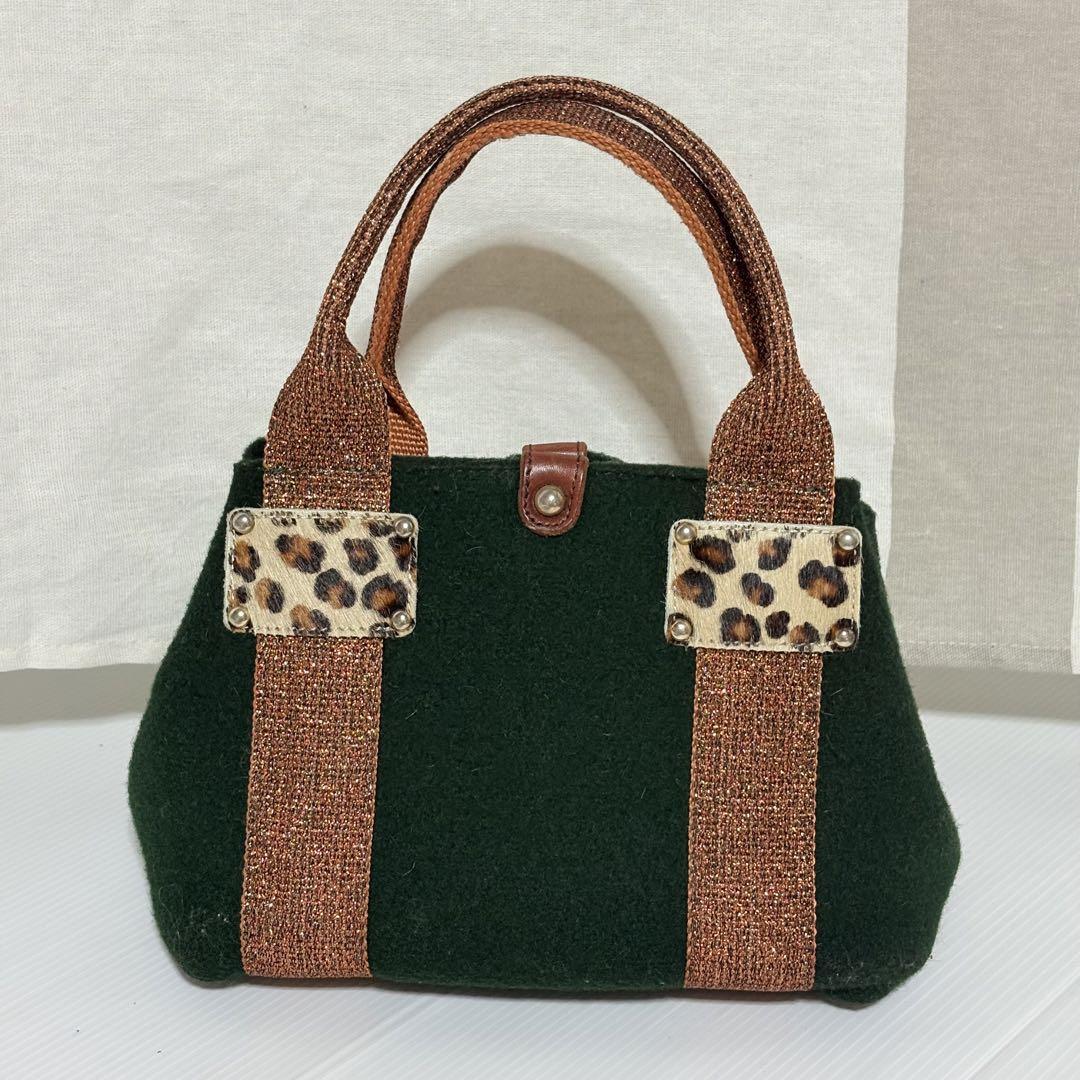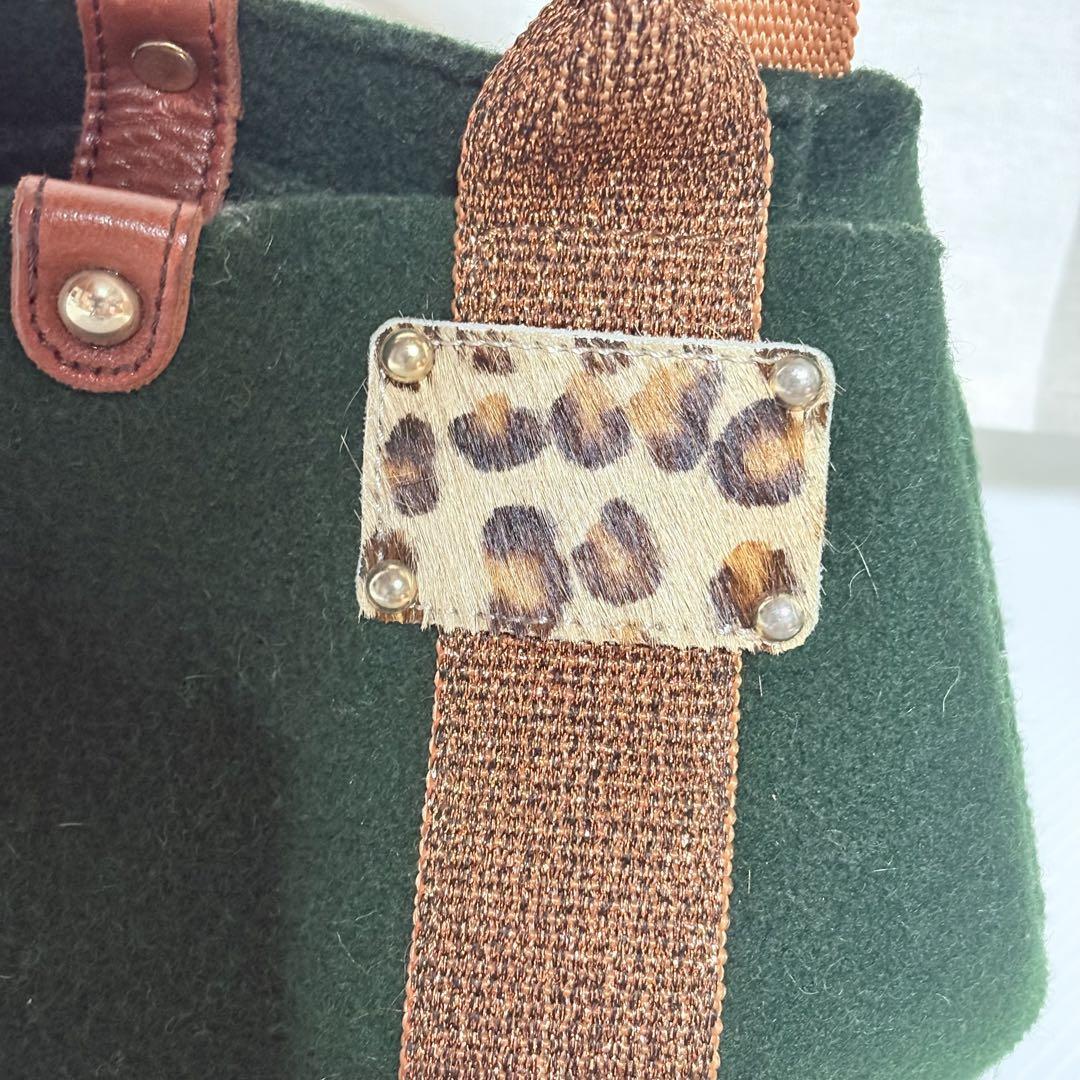 肉厚で温かみのあるイタリア製のフェルト生地にラメ入りテープとレオパード柄のヘアカウパッチをあしらい、ラグジュアリーな雰囲気に仕上げました。マチがたっぷりあり、長財布やポーチなど見た目以上に荷物を収納可能。内側のベルトで間口を広げることもできるので2通りの表情を楽しめます。