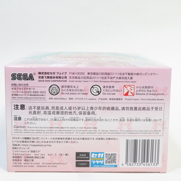 在庫は一点のみになります。当日~翌営業日出荷にて対応致します。メーカー名:SEGA/セガ品目コード・型番:1120817商品名:Luminasta 初音ミク 初音ミク Conceptual series Vol.3状態:未開封品クレーンゲームのプライズ商品です。獲得の際のアームによる傷や落下時の箱の凹みや傷がある場合がありますので、あらかじめご了承下さいませ。