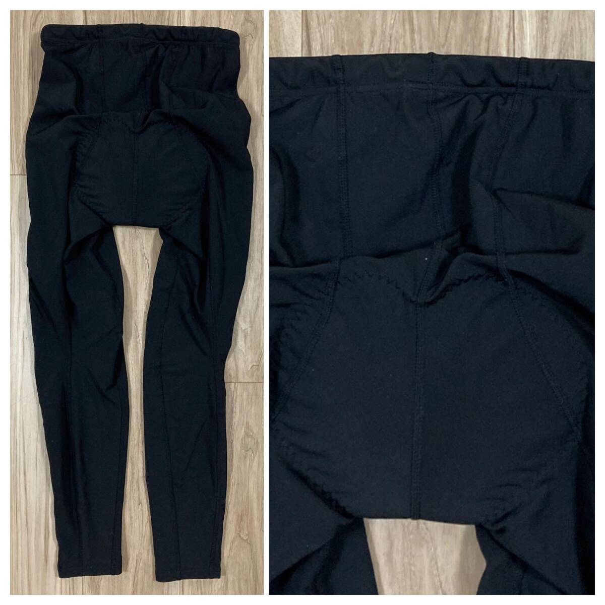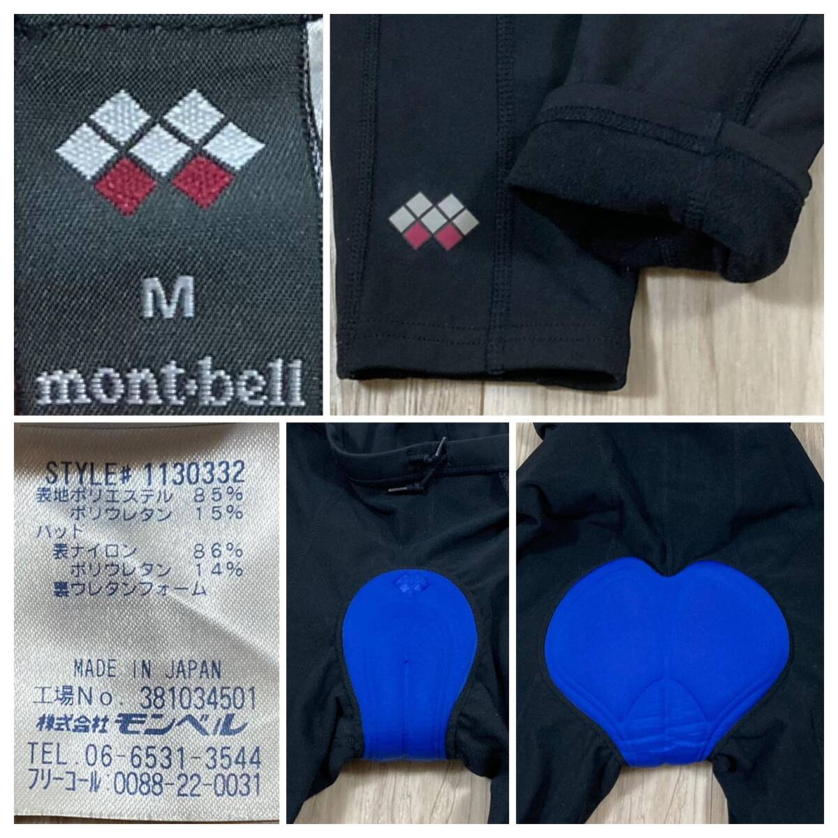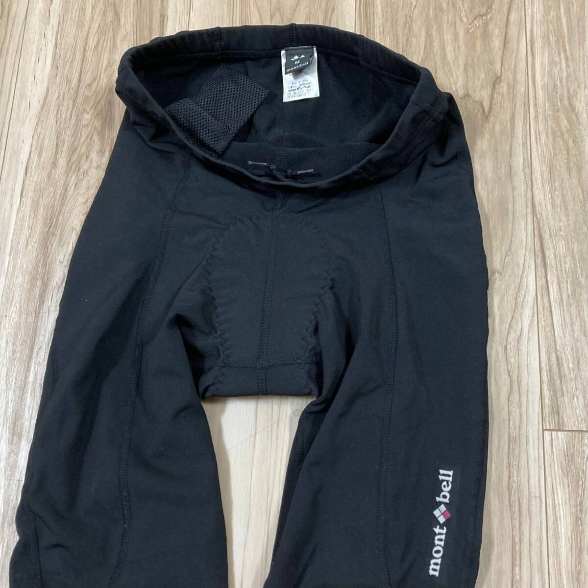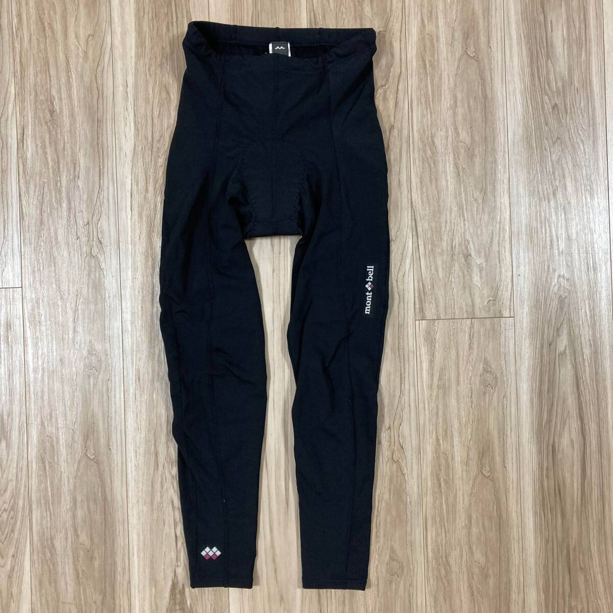 送料230★美品 モンベル M レディース 秋~春用 3Dパッド付き レーサータイツ mont-bell ロゴ&マーク 重品ポケット 良質品 D826 ブラック