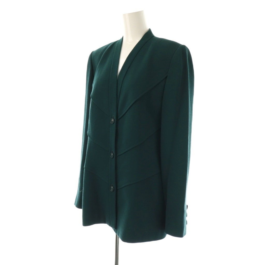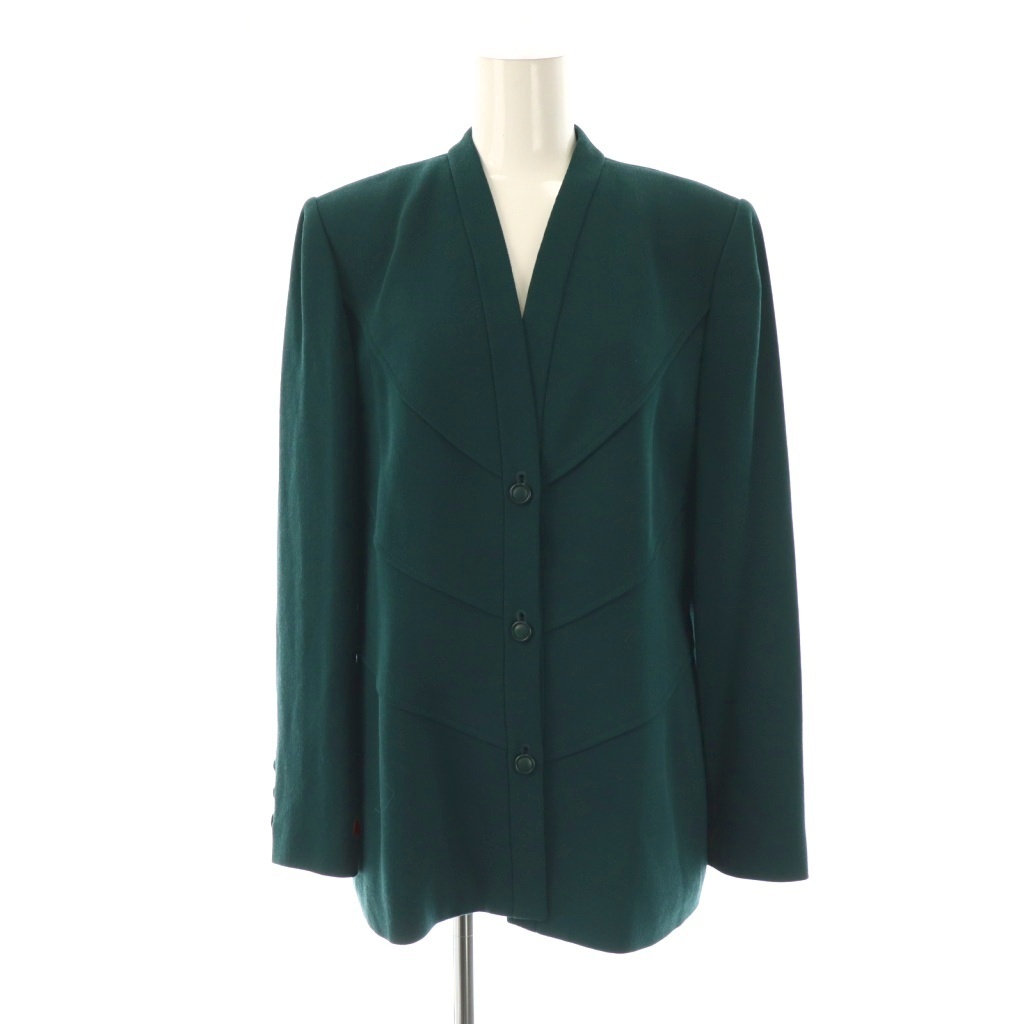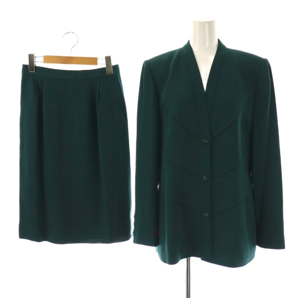 ジュンアシダ jun ashida セットアップ ジャケット ノーカラー スカート 膝丈 タイト 9 グリーン /HK ■OS レディース