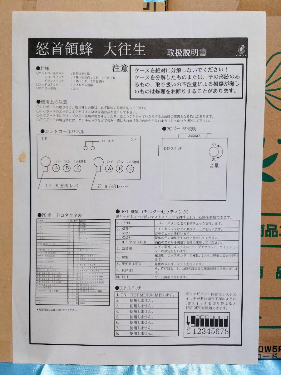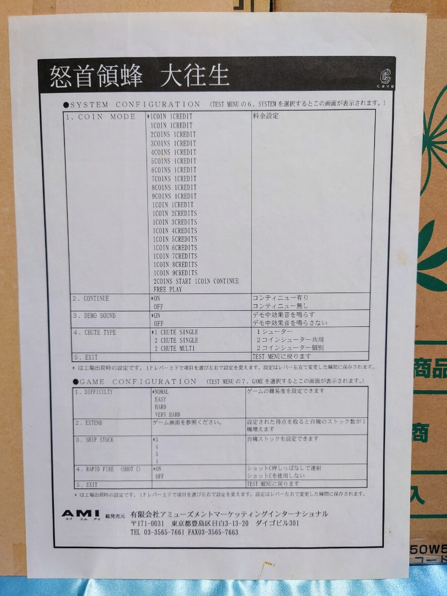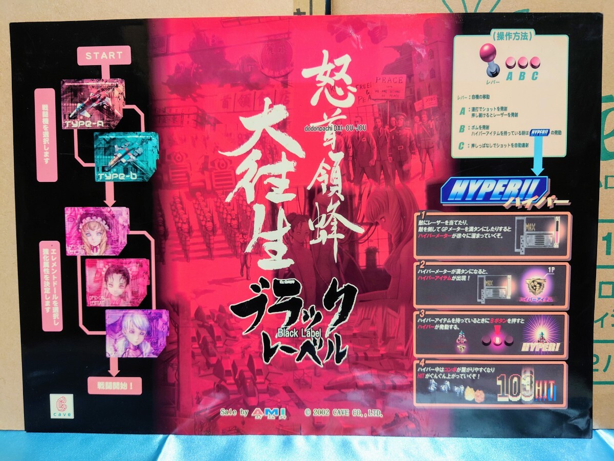 過去に中古市場で入手したアーケードゲーム『怒首領蜂大往生ブラックレーベル』の純正インストラクションカード・説明書のセットとなります。