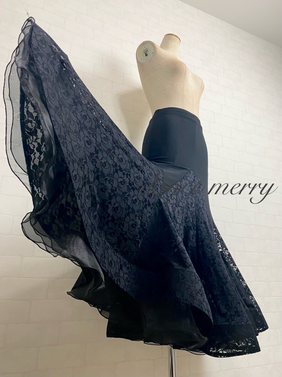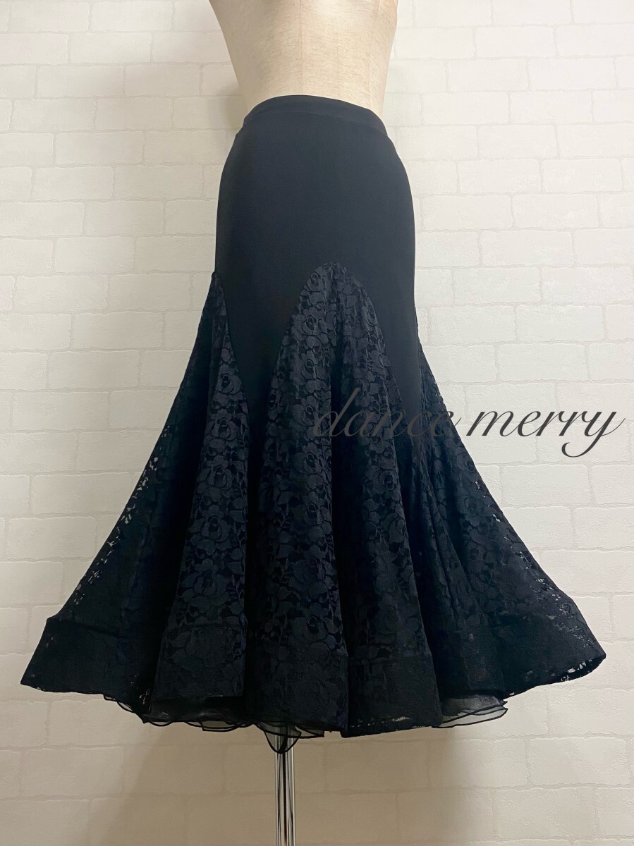 肌ざわりの良いストレッチ素材、レースを使用した社交ダンス スカートです。