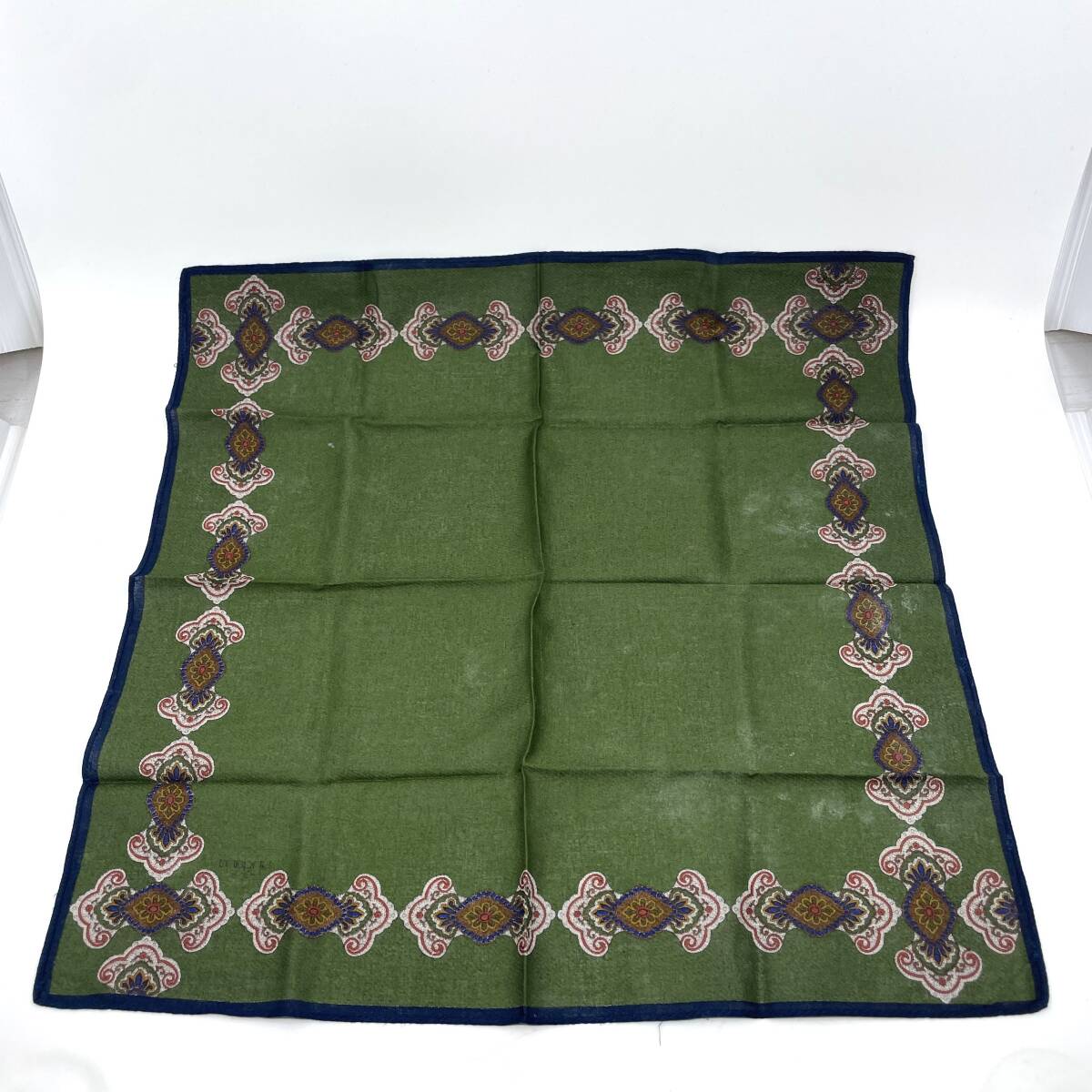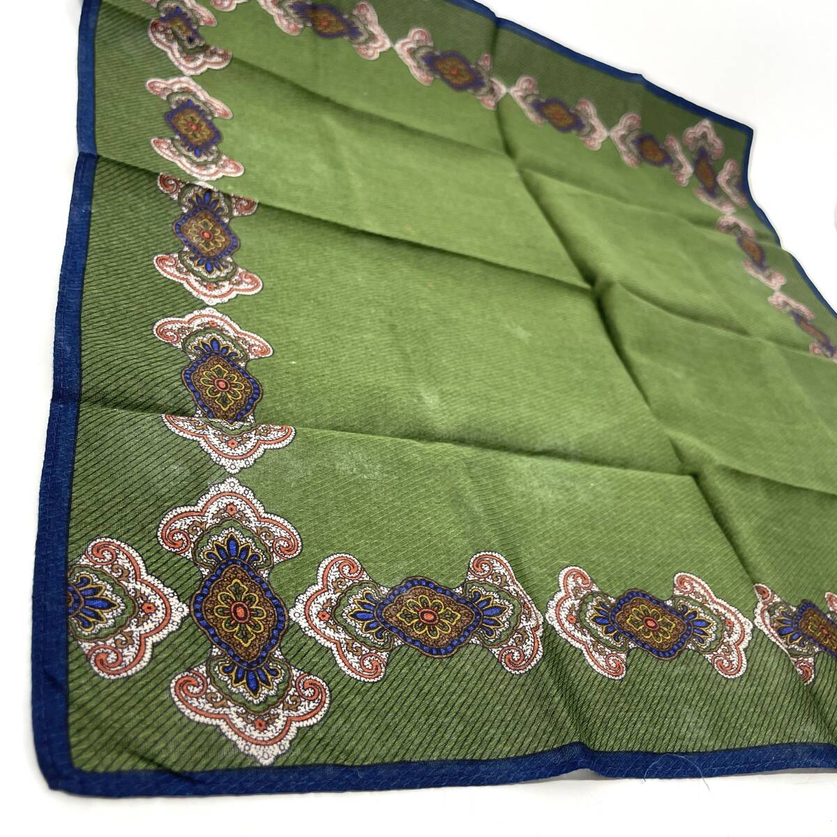 ハンカチ バンダナ グリーン系 縁ブルー 斜めストライプ ラグジュアリー エレガント