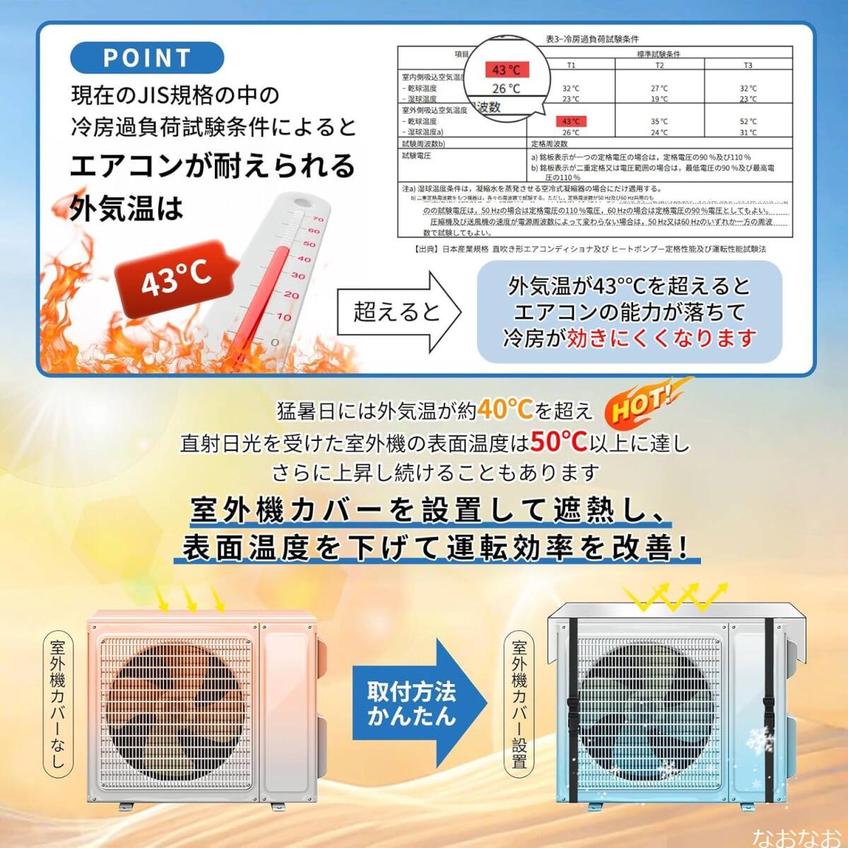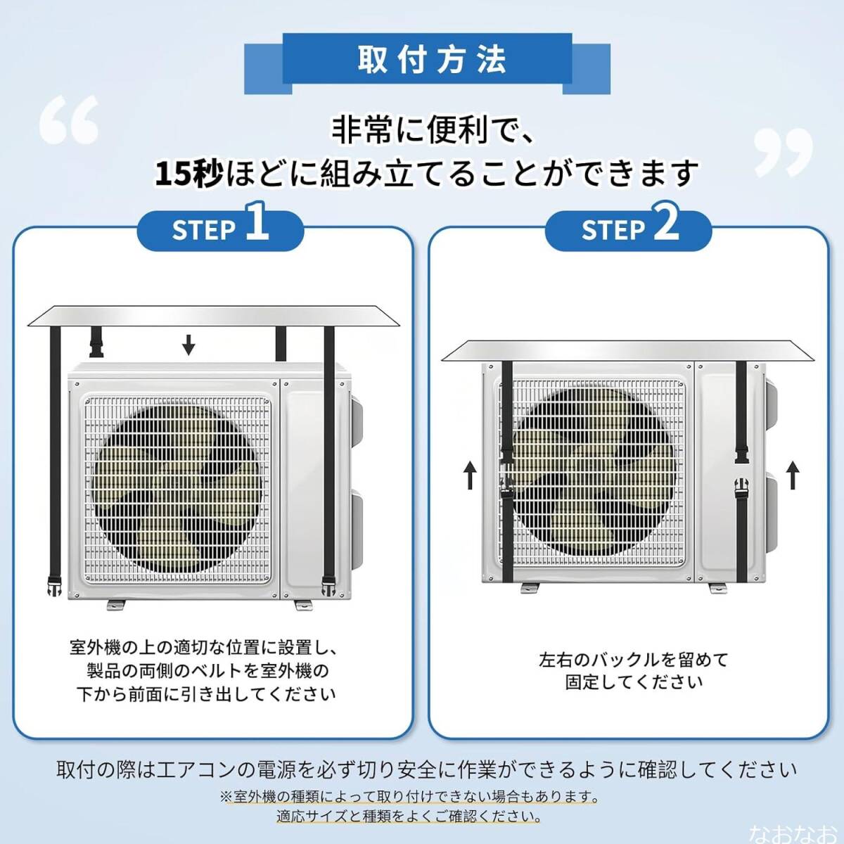 【悪天候対策】撥水加工が施されたエアコン室外機遮熱シートは、直射日光、雨、雪などの過酷な天候から室外機をしっかり守ります。雨の日でも、室外機が快適に機能し、長期間の使用をサポートします。