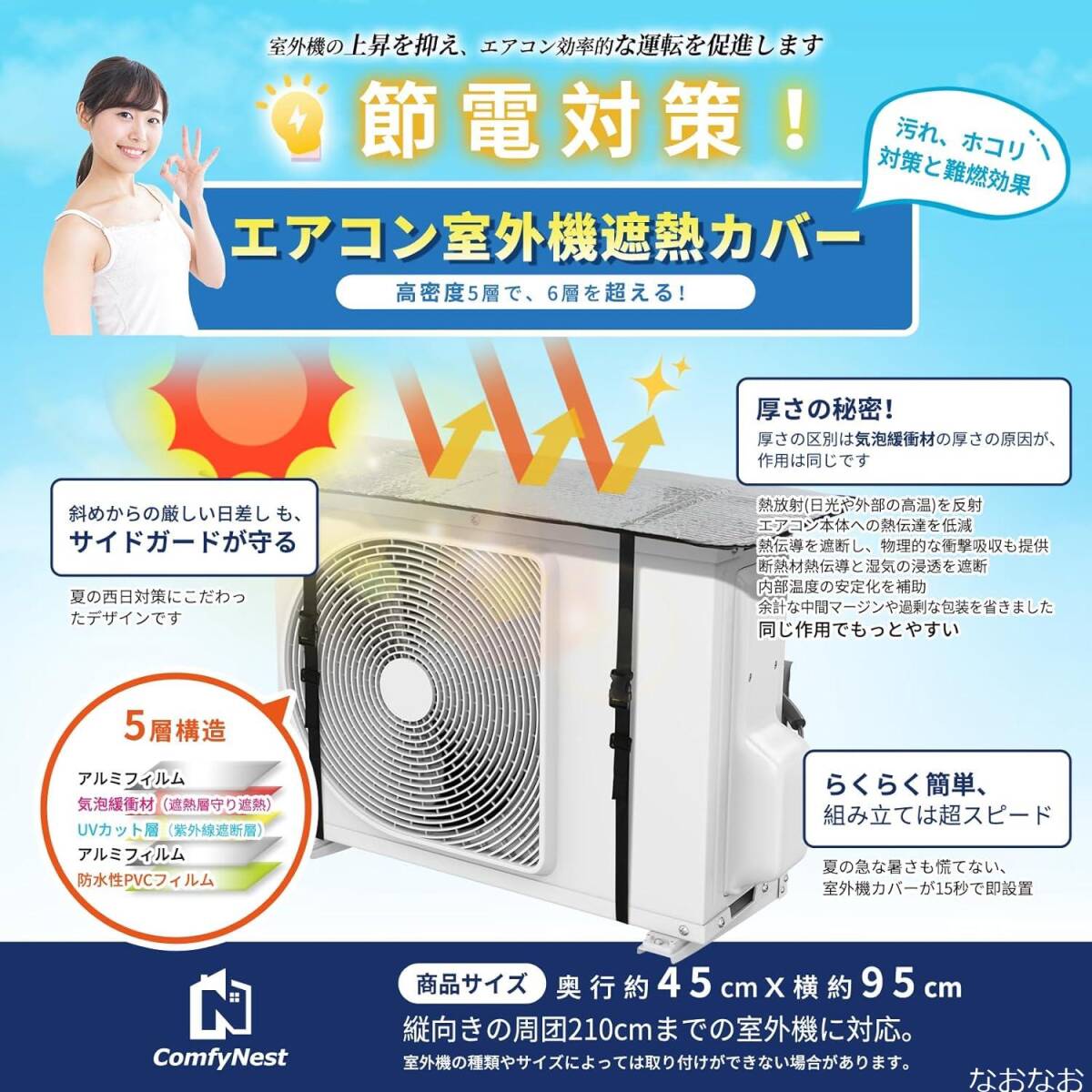 Comfynest 室外機カバー エアコン室外機カバー 日除け 秋 冬 暖房 防雪カバー 防塵保護 耐候 遮熱シート ベルト固定タ