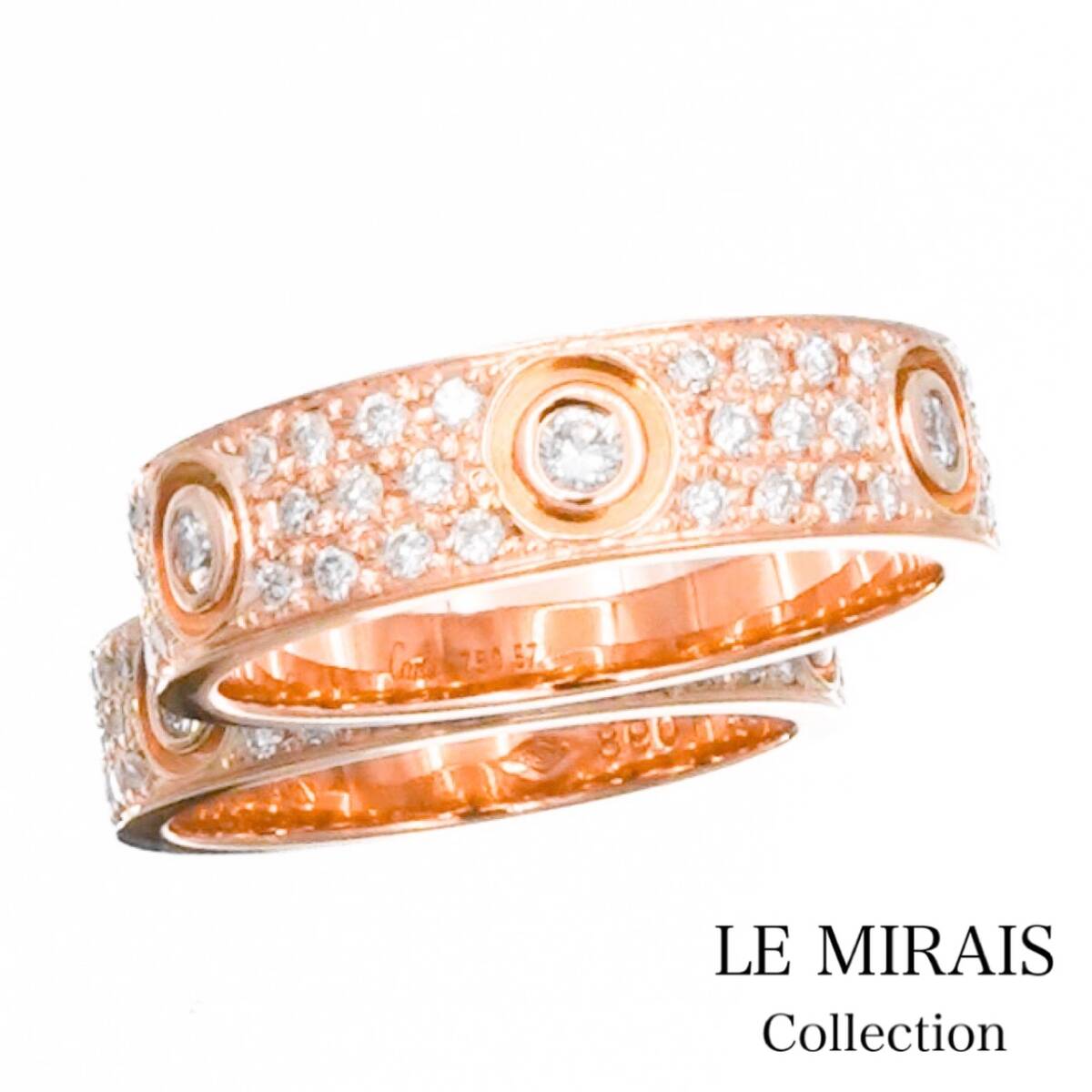 【仕上済】カルティエ ラブリング 17号 PG フルパヴェ&6Pビス ダイヤ 17 57 K18PG レディース リング・指輪 CARTIER