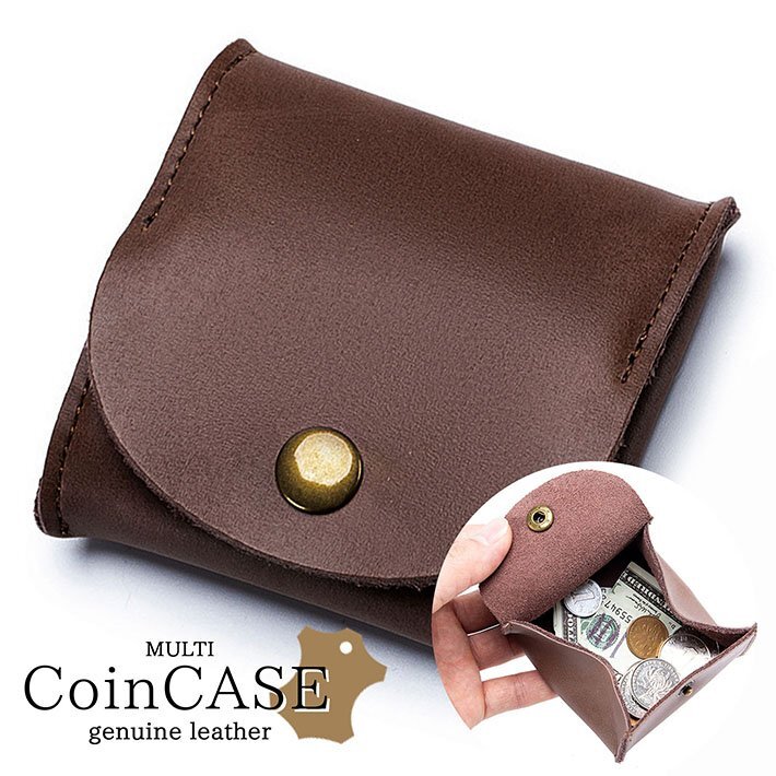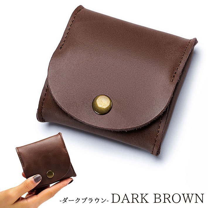 ミニ財布 短財布 小銭入れ コインケース レザー 本革 7987556 ポーチ イヤホンケース メンズ レディース ダークブラウン 新品 1円 スタート