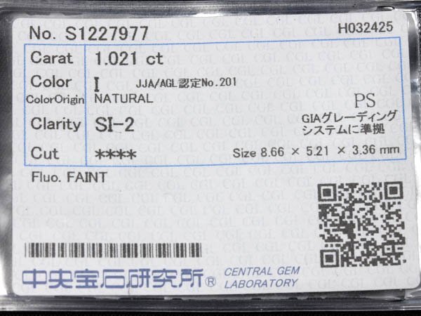 ●クラリティ:SI-2 ●カラー:I ●カット:Pear shaped cut ●1.021ct 【ct数の刻印あり】 ◆脇石 天然ダイヤモンド ●総計0.6ct 【ct数の刻印あり】 ◆付属品【中央宝石研究所】発行ソーティング】 |