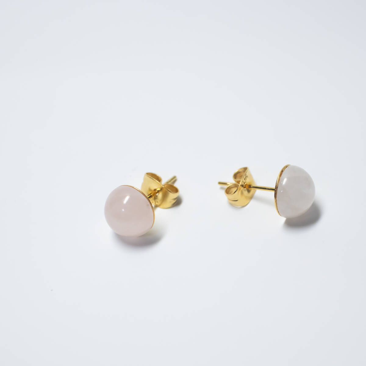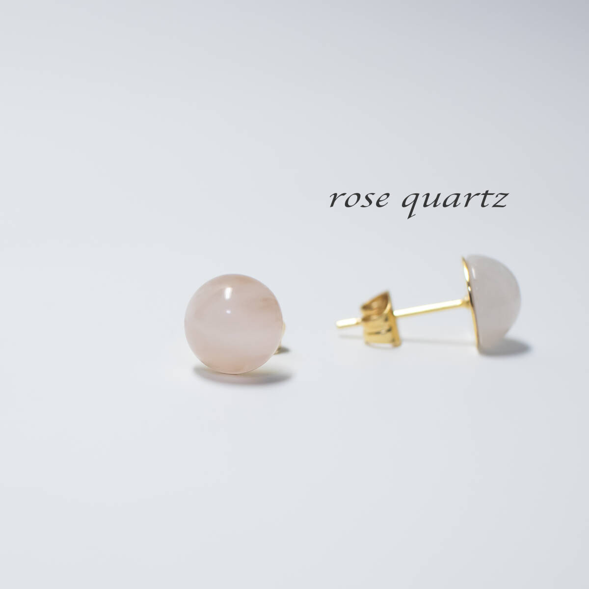 淡いピンクが耳元をやさしく彩る、ローズクォーツのカボションピアスです。