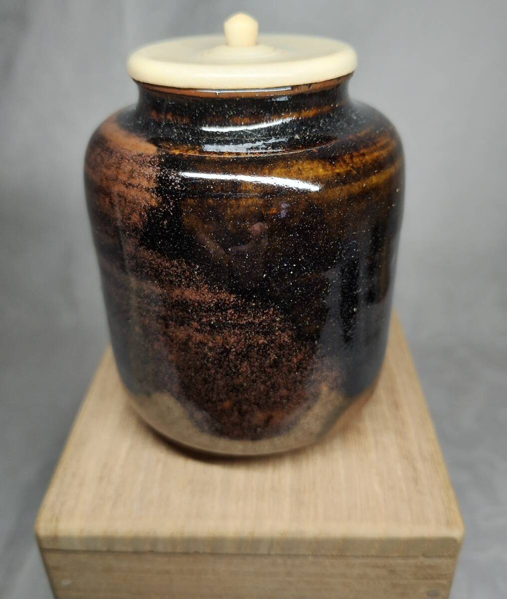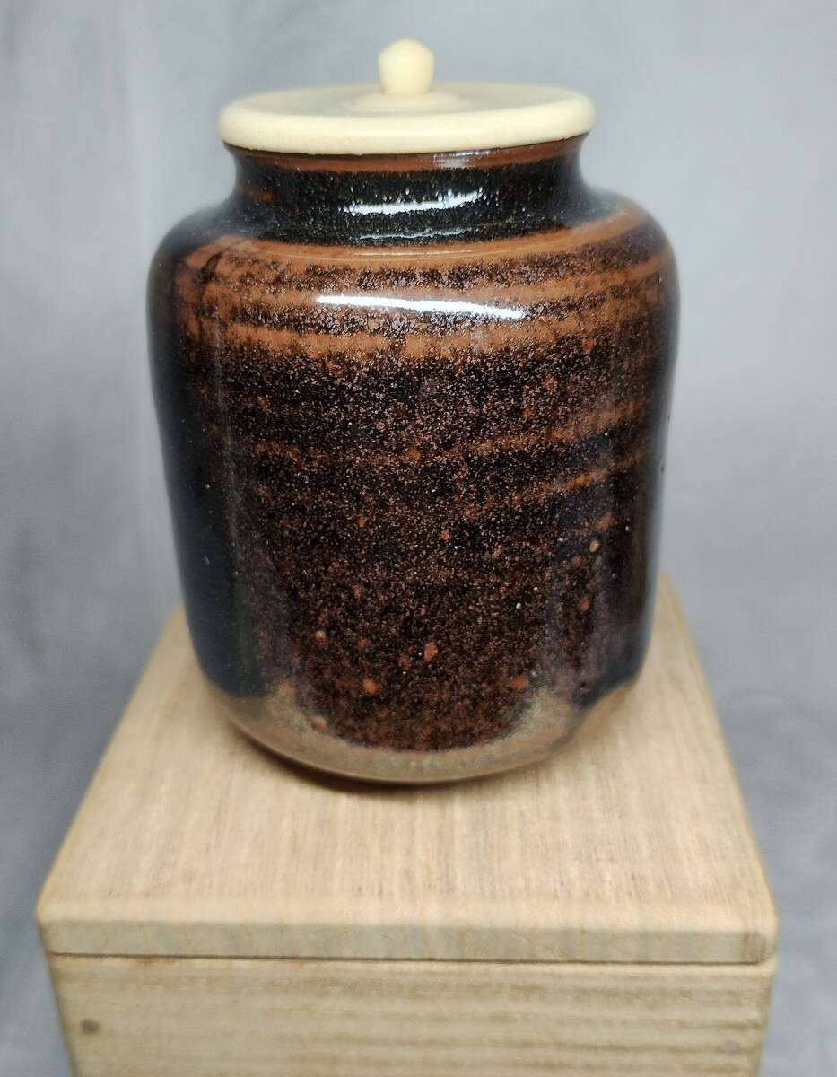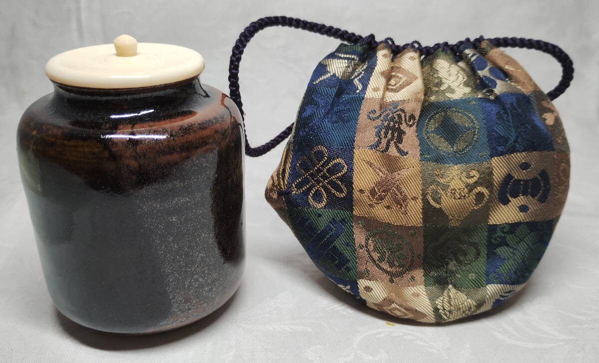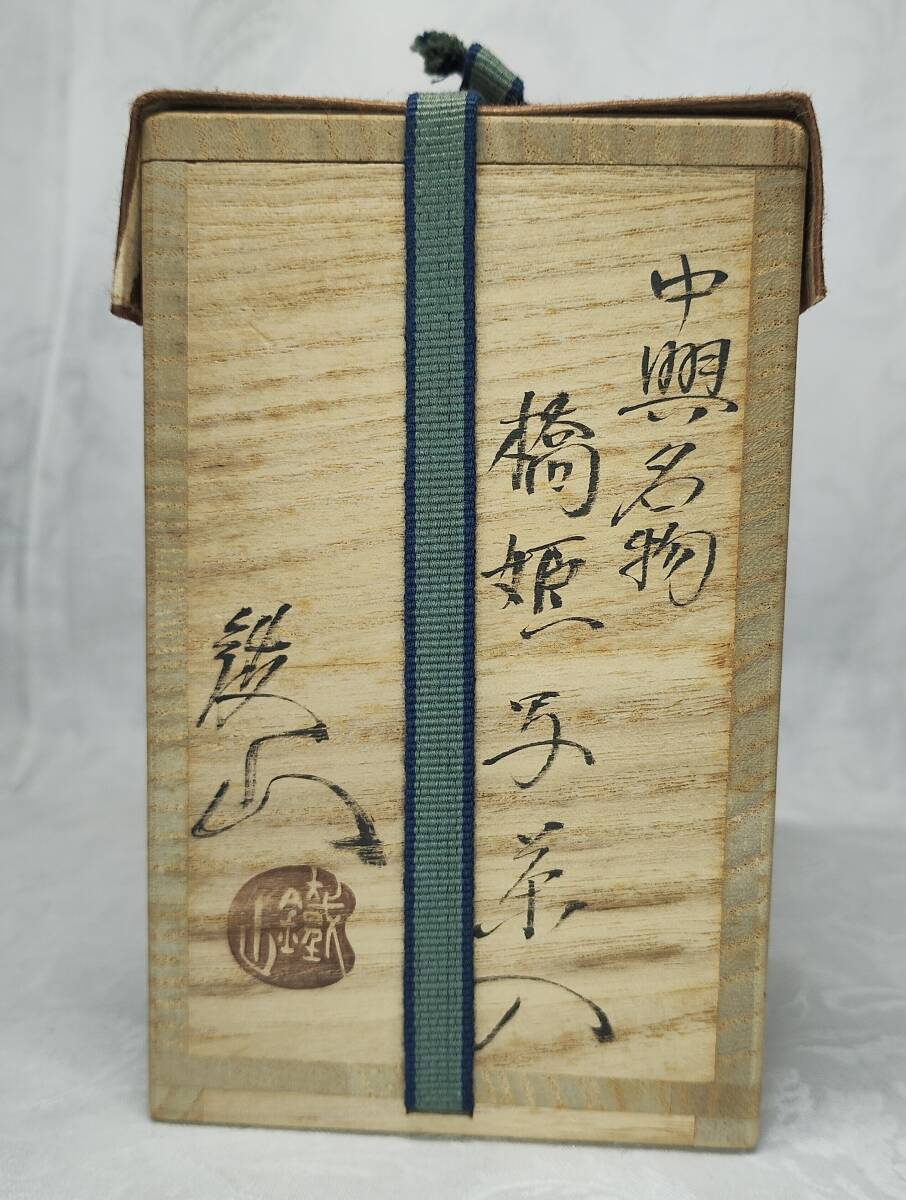 松本鉄山 中興名物 橋姫写 茶入 仕覆 花色石畳純子 共箱 茶道具