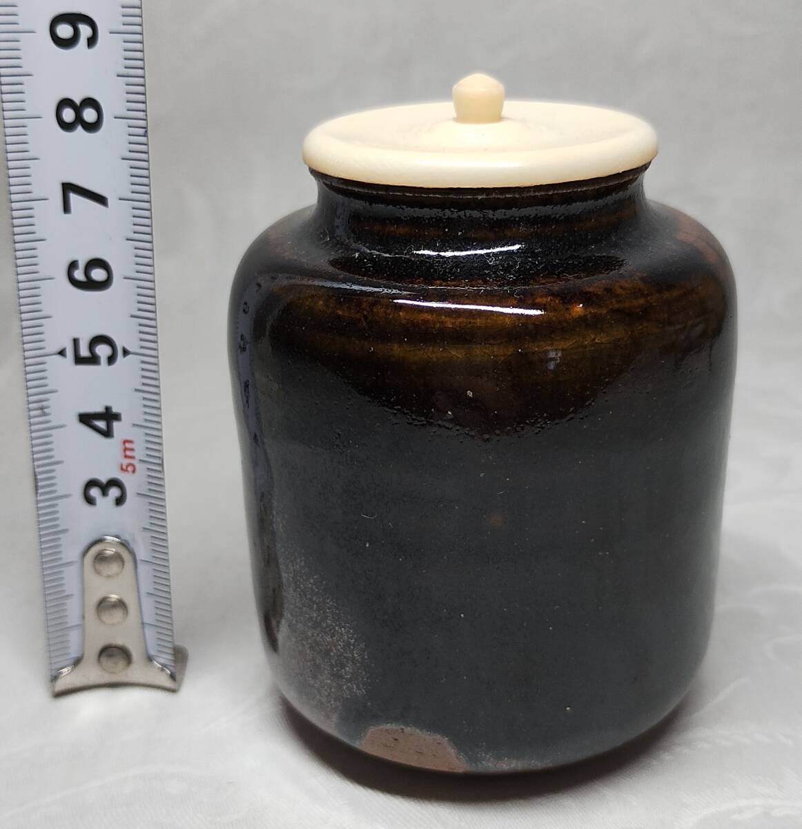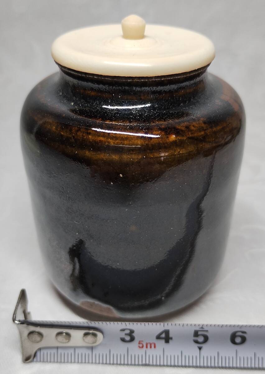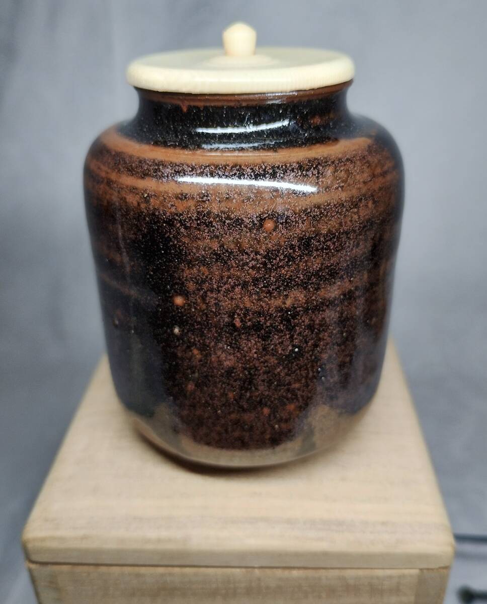 松本鉄山 中興名物 橋姫写 茶入 仕覆 花色石畳純子 共箱 茶道具