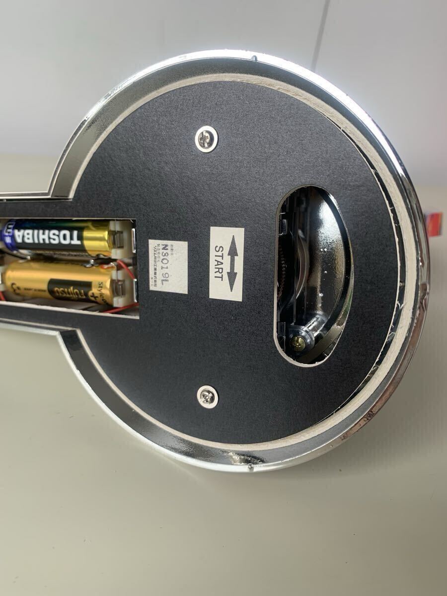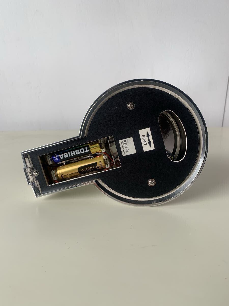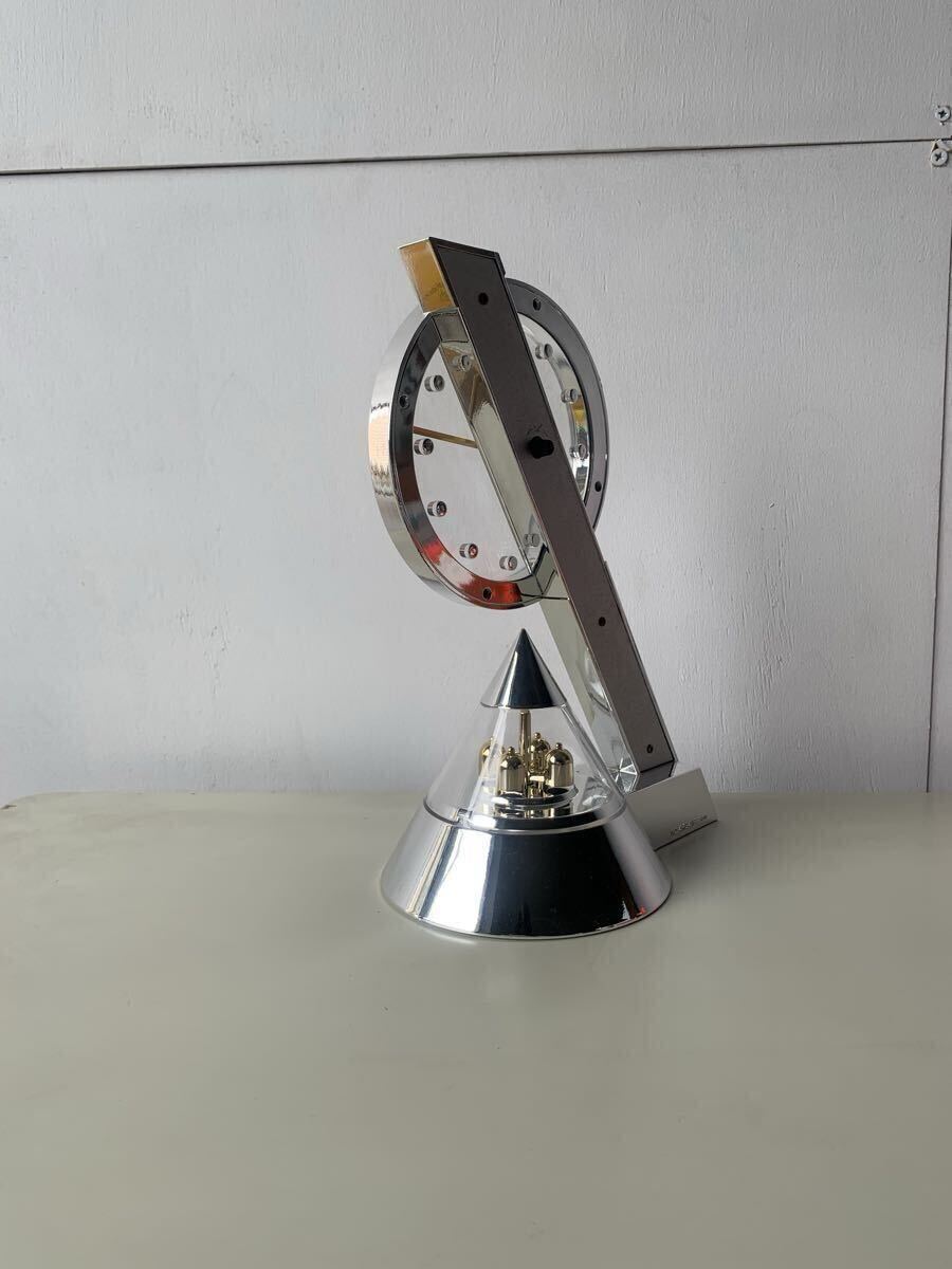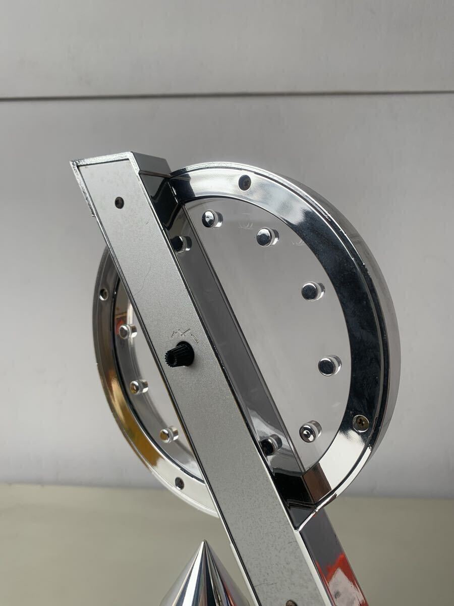 可動品 デザインが素敵なCITIZENの置き時計です。日本製。三角部分の中の部品がくるくる回ります。お部屋のインテリアやお店のディスプレイにいかがでしょう。電池は付属しません。画像の通り、電池カバーがありませんが、使用に問題ありません。